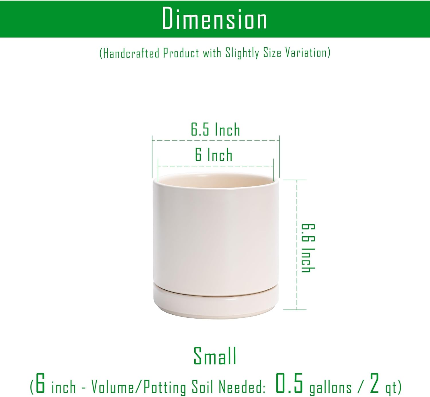 - Small 6.5 Inch Planter Pot: 6.5" Diameter x 6.6" H, oatmeal color. Potting Soil Needed: 0.5 gallons / 2 qt.