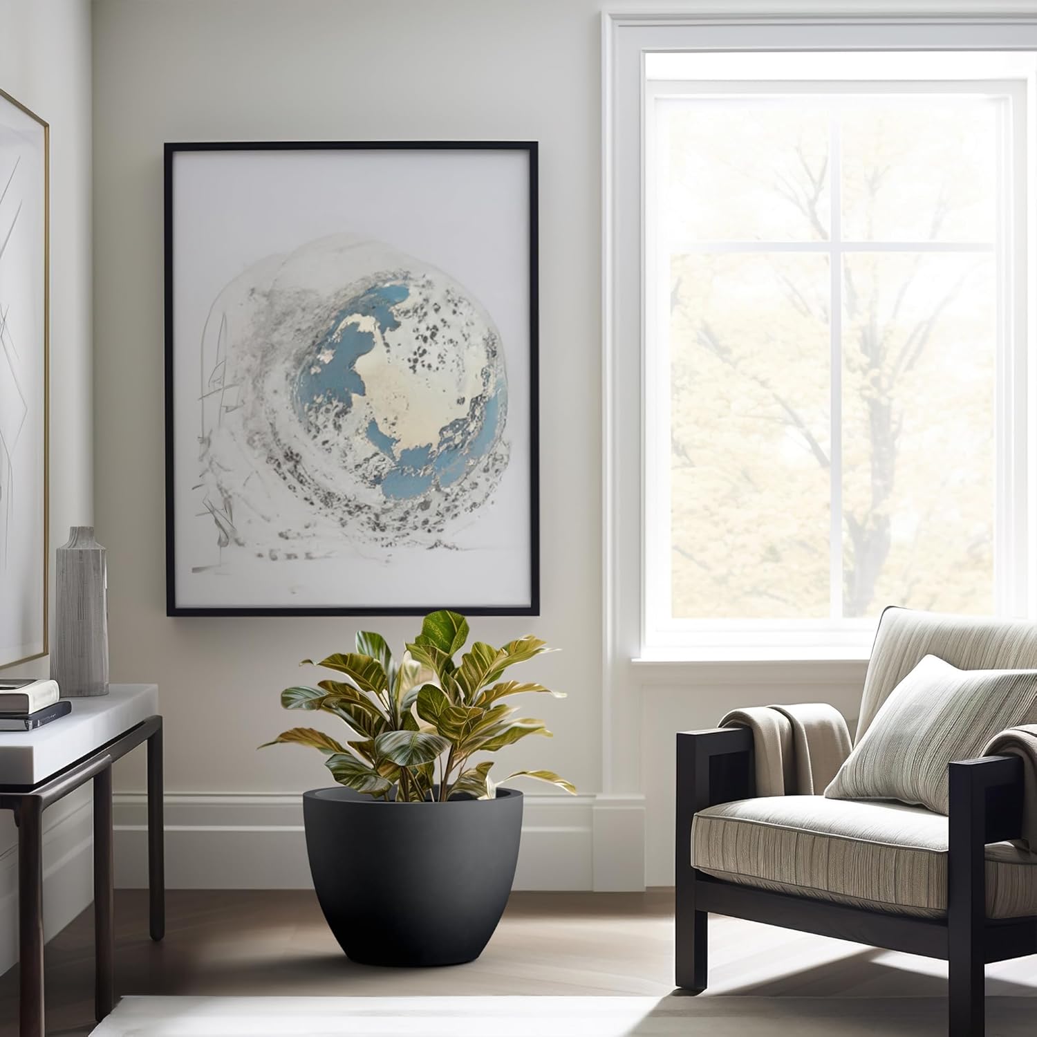 Kante 17.3 Inch Round Concrete Planter - Classic Large Indoor/Outdoor Plant Pot with Drainage Hole and Rubber Plug, Suitable for Gardens and Patios, Black