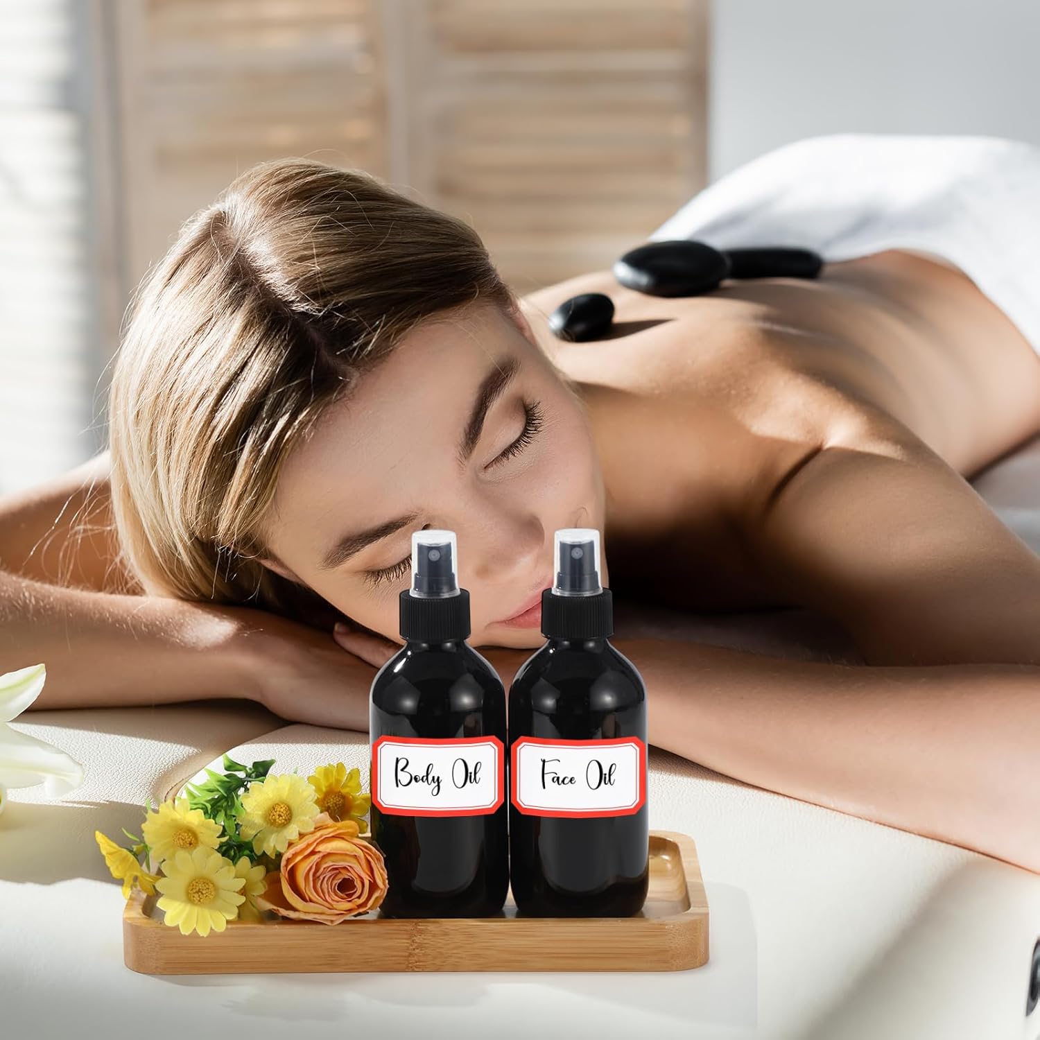 Norme 12 Pcs 8 oz Glass Spray Bottles with Funnels and Labels Refillable Cosmetic Empty Spray Bottles with Sprayer Containers for Essential Oil Cleaning Solutions(Black,Stylish)
