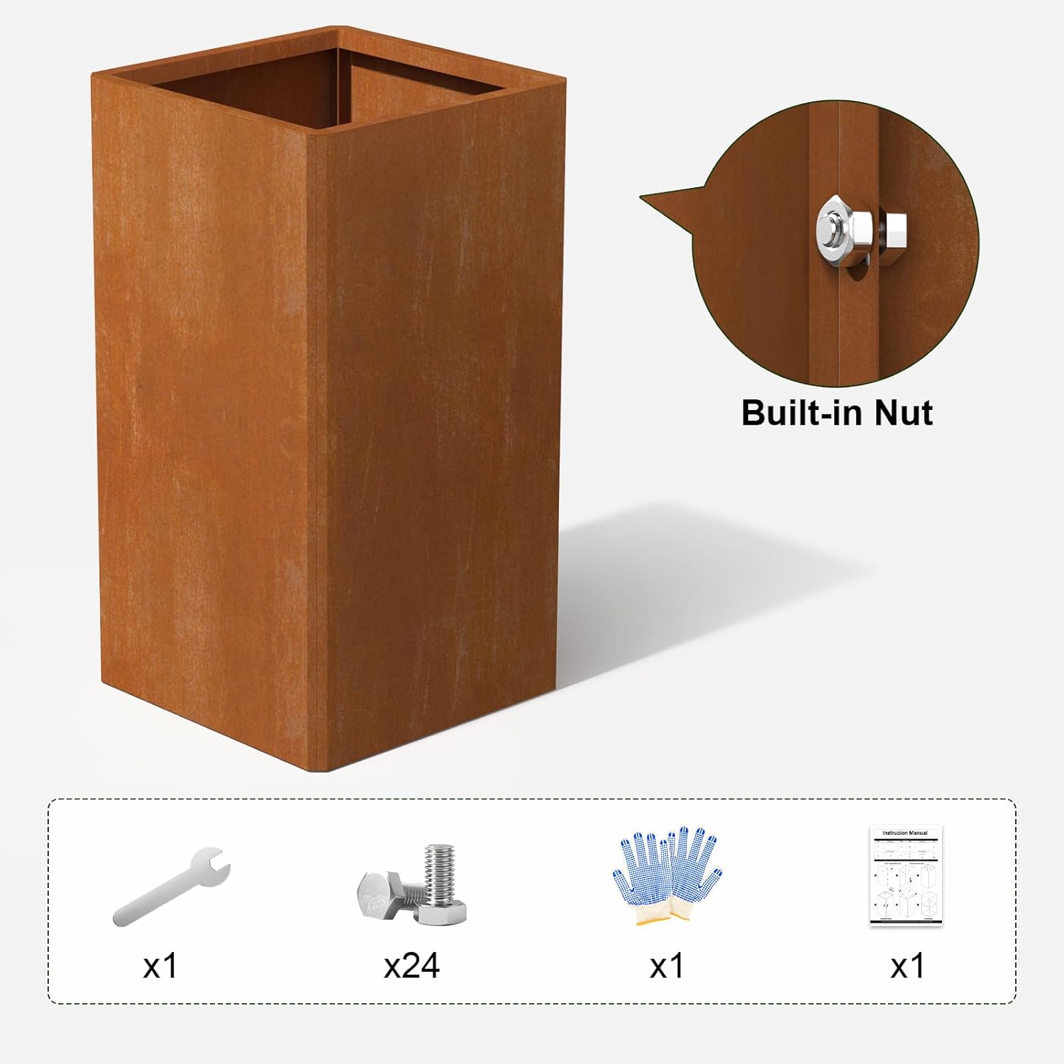 - ♻️ Eco-Height Landscape Transformation: Large outdoor planter made with metal steel withstands elements. Sustainable rust evolves elegantly—transforms porches/offices into instant vertical gardens!