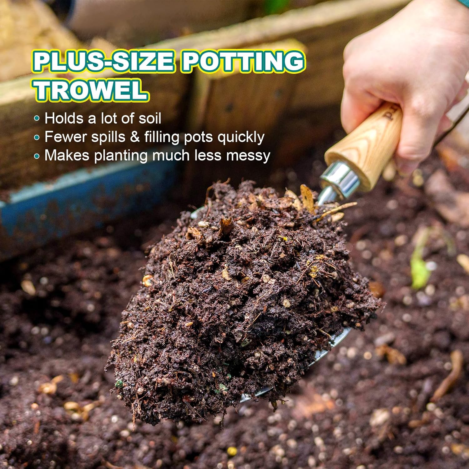Berry&Bird Potting Trowel, Oversized Garden Hand Shovel with Sharp Blade & Wood Handle, Stainless Steel Gardening Tool for Roots, Planting, Digging, Transplanting, Soil Loosening and Fertilizer Mixing