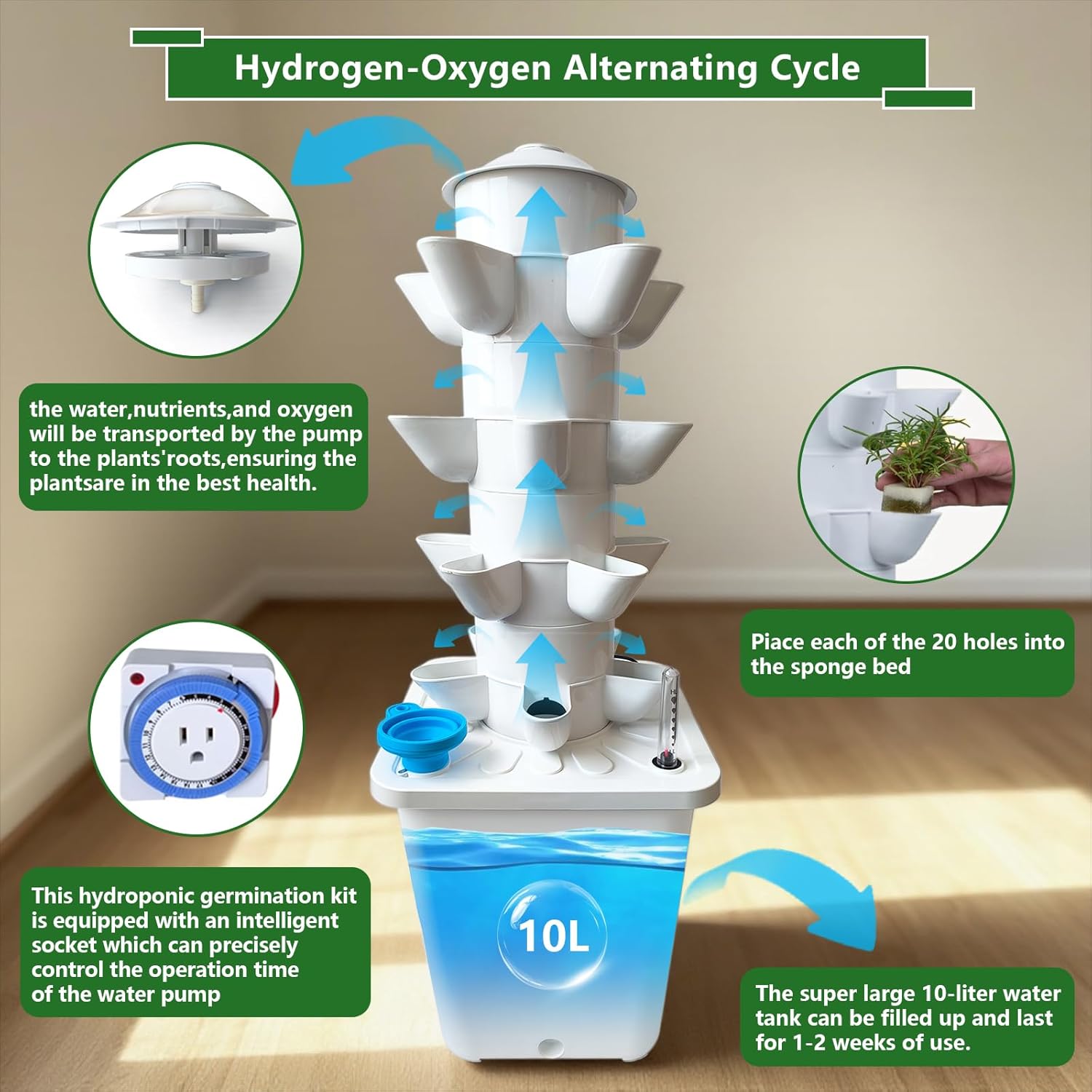20 Plants Hydroponic Tower, Hydroponics Growing System Tower, Hydroponics Tower with Timer Automatic Watering, Vertical Hydroponic Tower, Planter Germination Kit for Herbs Vegetables Fruits