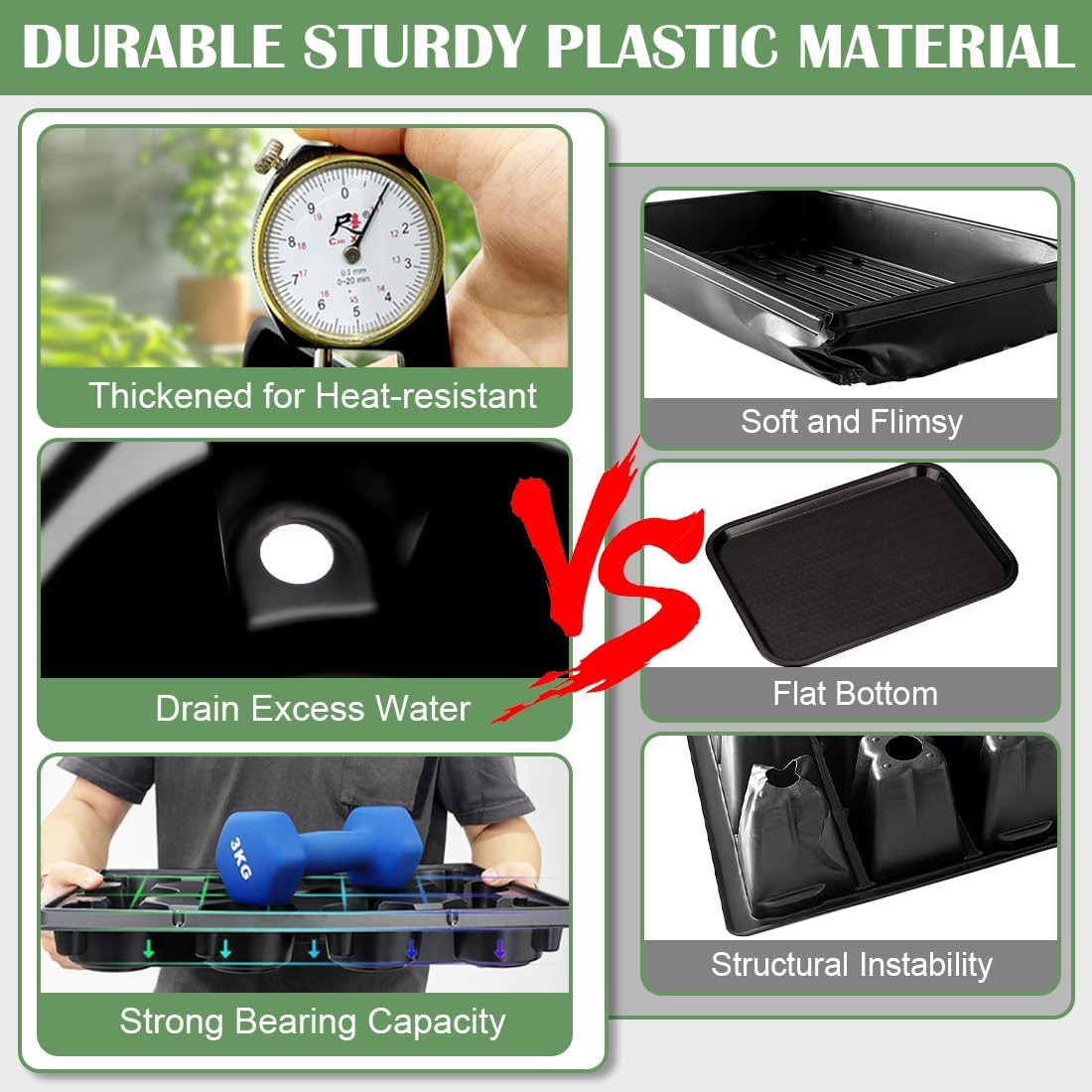 - 【Function】Our 12 Cell Seedling Tray for 4 inch Round Nursery Pot, each of the 12 'cells' that hold the pots are interconnected, there is a drainage hole in each of the four corners of the tray so you don't have to worry about rotting roots or automatic overwatering. You can water any one of them and the water will flow to all the others to water those pots.