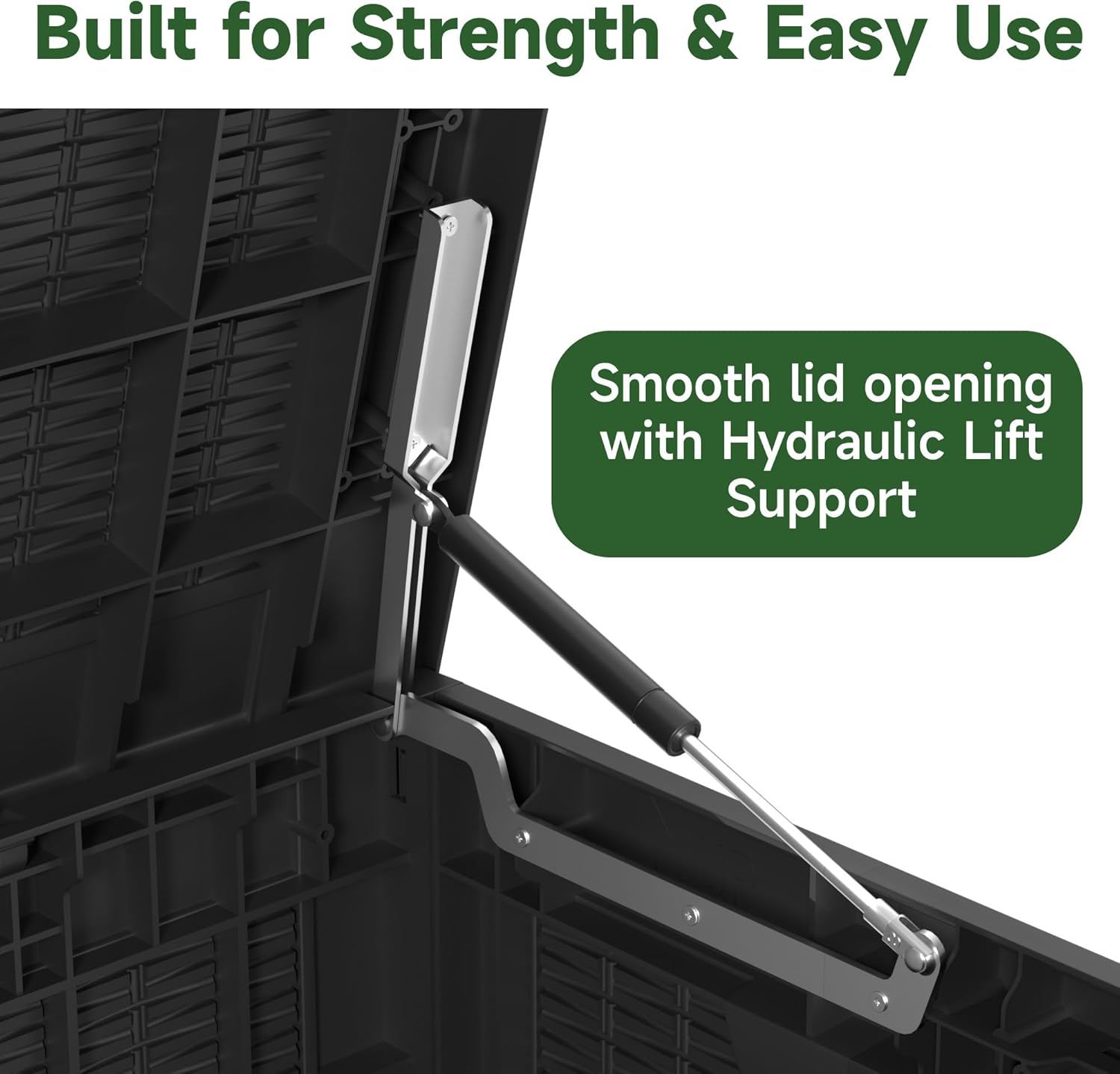 - SAFE AND SMOOTH OPERATION:Featuring a hydraulic-assisted lid that opens and closes smoothly, the storage box reduces the risk of pinching. The integrated locking mechanism provides added security for your stored valuables.