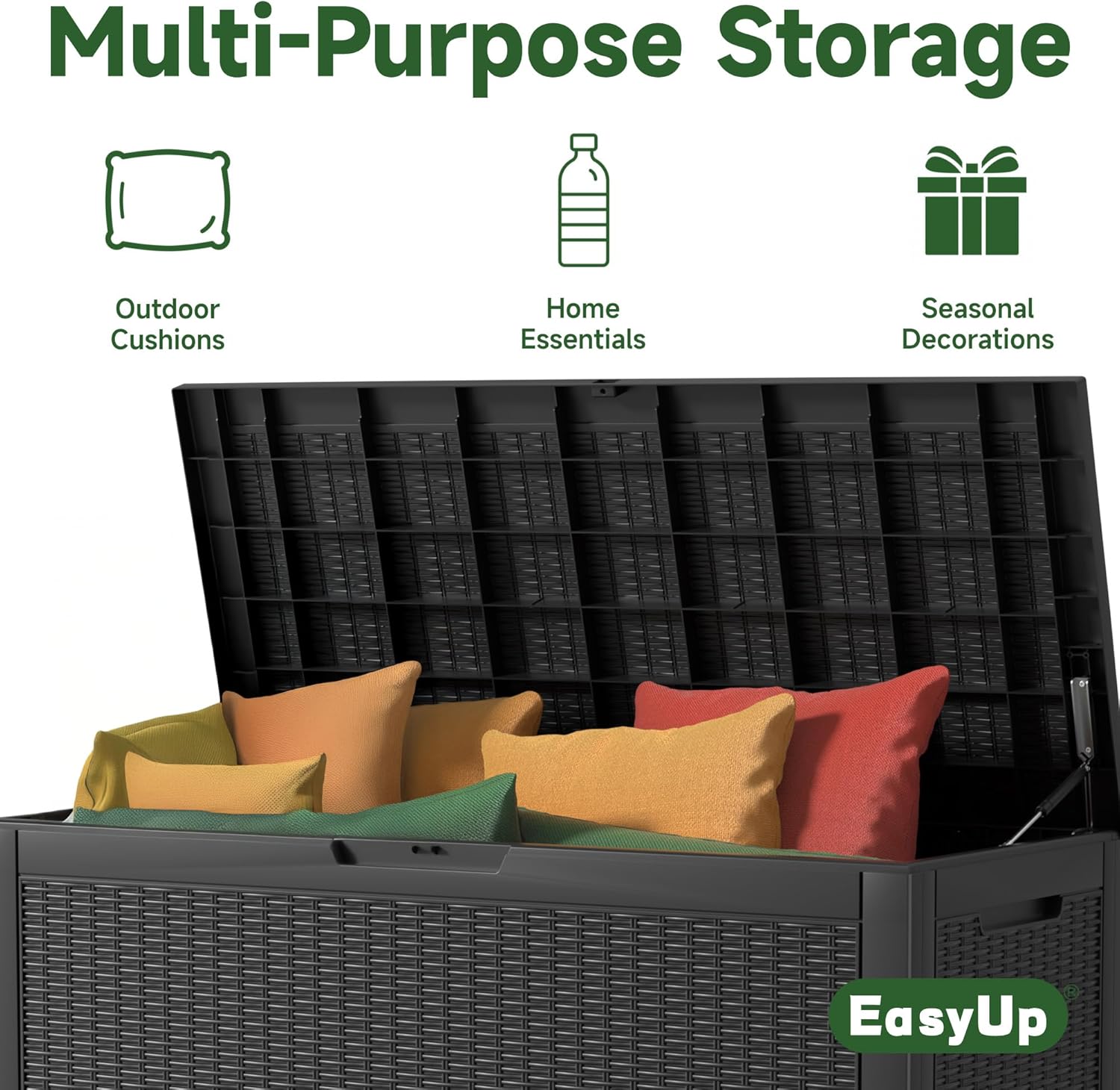 - STURDY AND RELIABLE BUILD:Designed with internal reinforcement, this deck box offers superior strength and stability compared to similar products. The robust panel construction and precise assembly help maintain its shape over time.