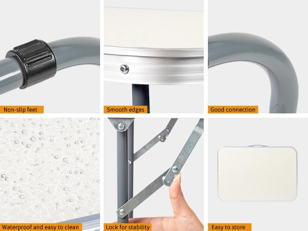 - ăDurable AluminumăThis portable table is made of Aluminum alloy material,and it is waterproof and rust-proof.It is Suitable for a variety of outdoor environments,to ensure long-term use is still stable and durable.The desktop is easy to maintain and can be simply washed and dried to put away for next use