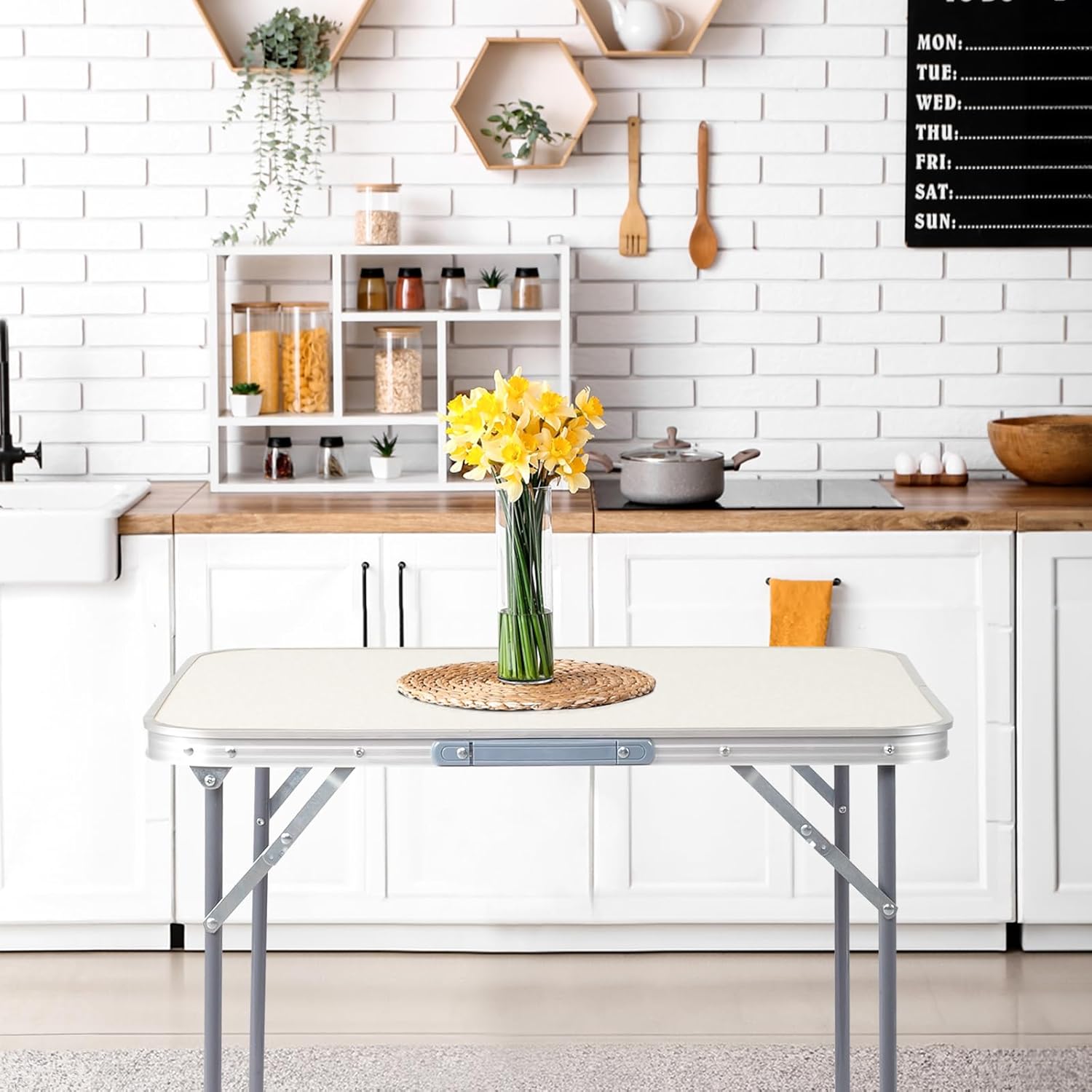 - ăDurableăThe folding table has a aluminum alloy frame and a wear-resistant desktop.The stable structure strong and load-bearing capacity can withstand 88 pounds of weight