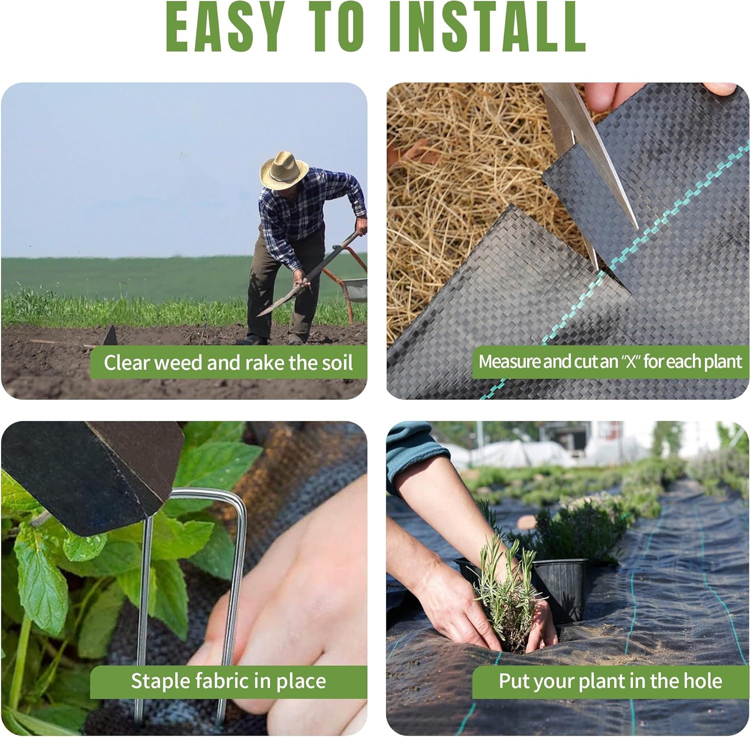 - Easy to Install and Cut: Weed barrier fabric heavy duty has green stripes for easy alignment of plants. And only need a pair of scissors to cut landscape fabric heavy duty to fit the size and shape of your home garden, high flexibility