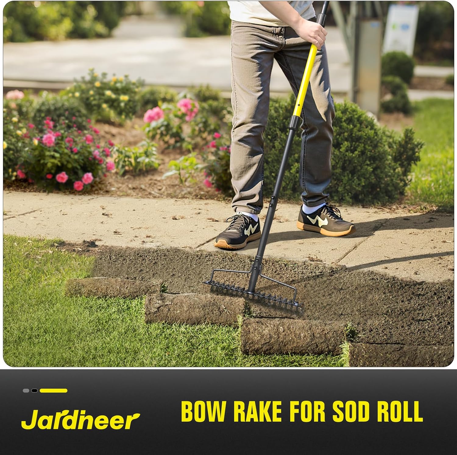 - 18-Tine Wide Head Rake for Efficient Yard Work: Featuring 18 sharp tines (2.5" long) and a 16" wide head, this long handle bow rake penetrates compacted soil, clay, and mulch with ease. The broad wide head design of the rock rake covers more ground for faster leveling and spreading, while protecting delicate plant roots—perfect for gardening, lawn care, and landscaping