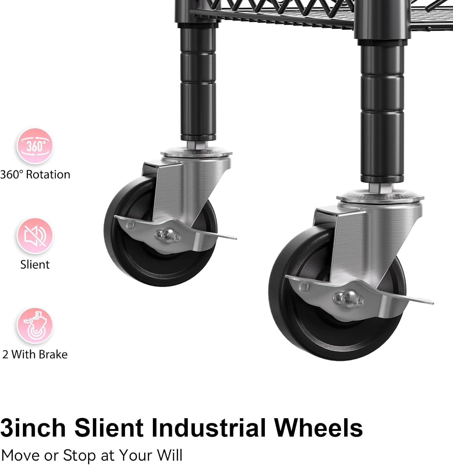 - 360Β° Silent Casters Utility Cart: The 3 tier rolling cart is designed with 4 silent casters; it transports heavy loads swiftly and smoothly. include 2 fixed locks wheels can hold the heavy duty utility carts with wheels firmly in place for added stability.