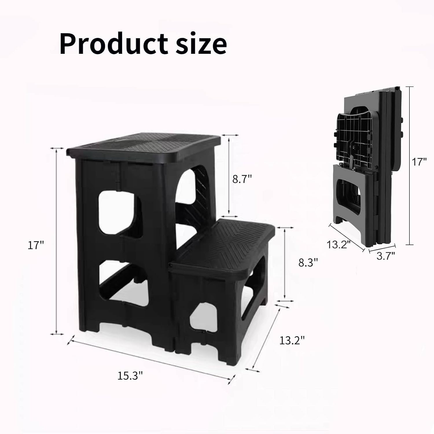 - STURDY CONSTRUCTION: Durable plastic step stool supports up to 300 pounds weight capacity, making it suitable for adults and everyday household use, folding step stool is measured 13"LΓ15"WΓ17"H