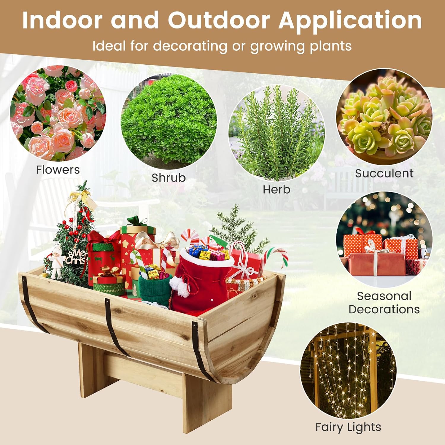 - Enhanced Stability: This decorative wooden half-barrel plant pot is secured with reinforced metal bands to enhance overall strength, preventing deforming or cracking, while the elevated base ensures it stable and well-supported.