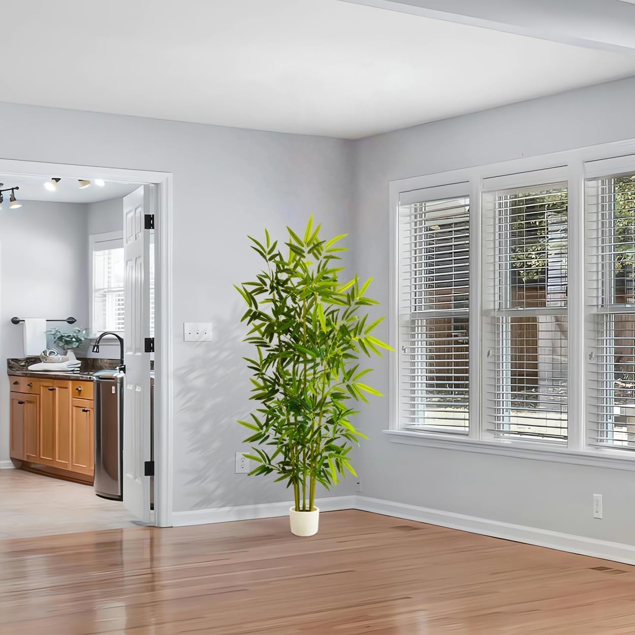 - 6ft tall artificial bamboo tree with luxury white planter(6.9"Diameter,6.9"Height)