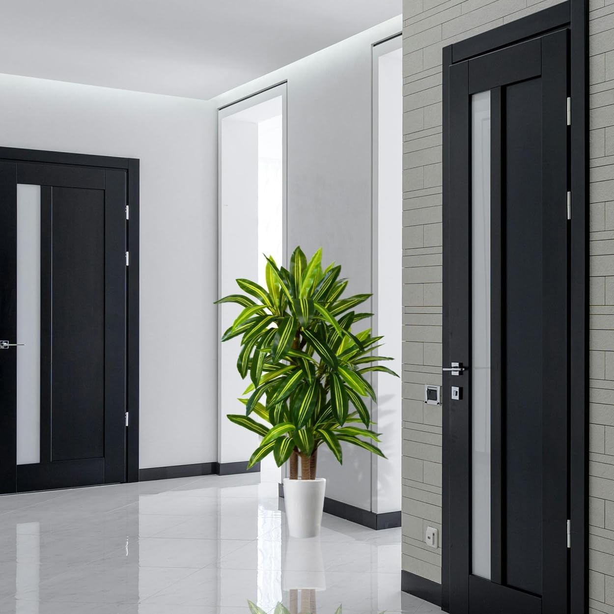 - 5ft tall artificial dracaena tree with luxury white planter(6.3"Diameter, 6.7"Height). This tree has 3 trunks, making it look fuller.