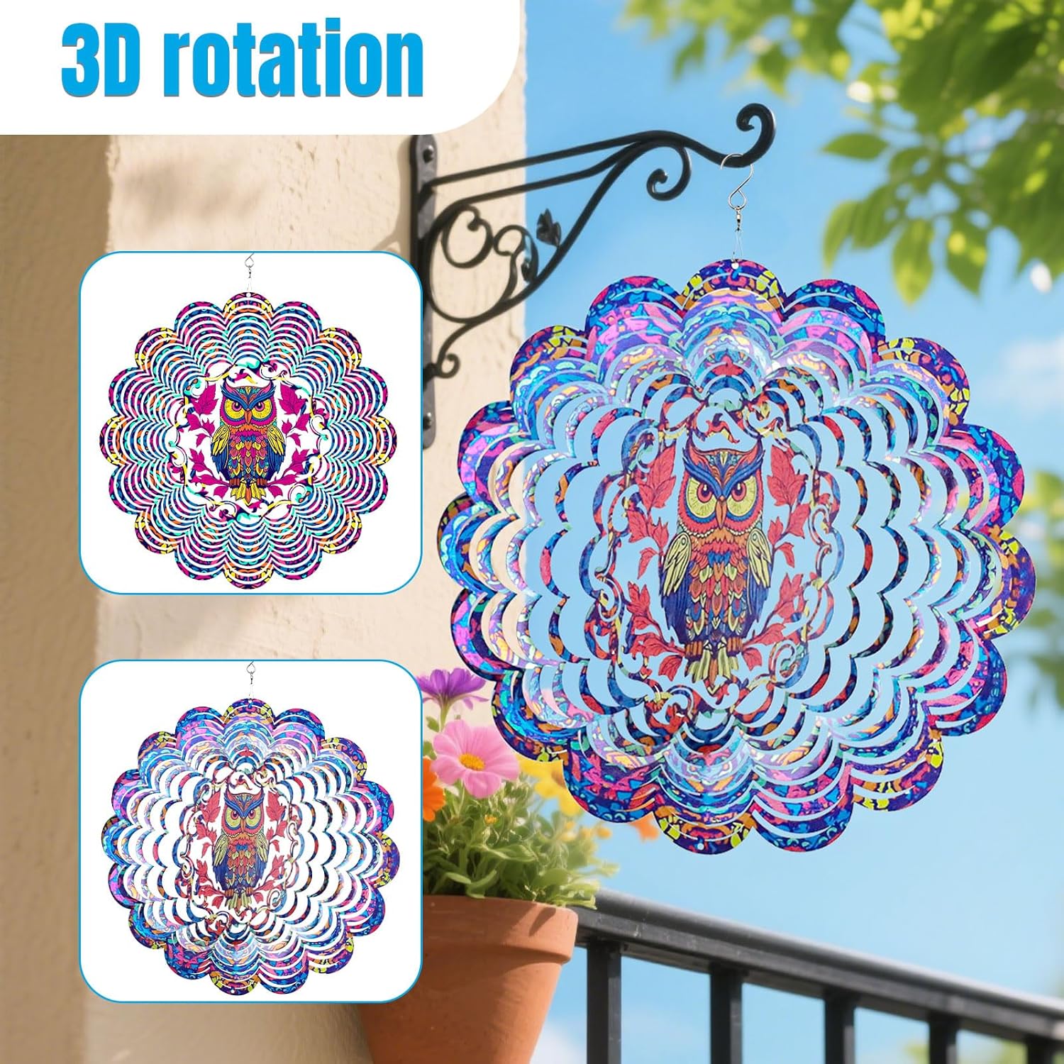 - 【Easy to Use and Hang】The wind spinner includes a 360° S-shaped hook and an isometric pendant. It is flat in the initial state, then hold the front of the wind spinner with your left hand and press down, hold the back of the wind spinner with your right hand and push up, and twist the layers evenly into a fan shape until you get the angle you want so that you will form a magical 3D masterpiece.