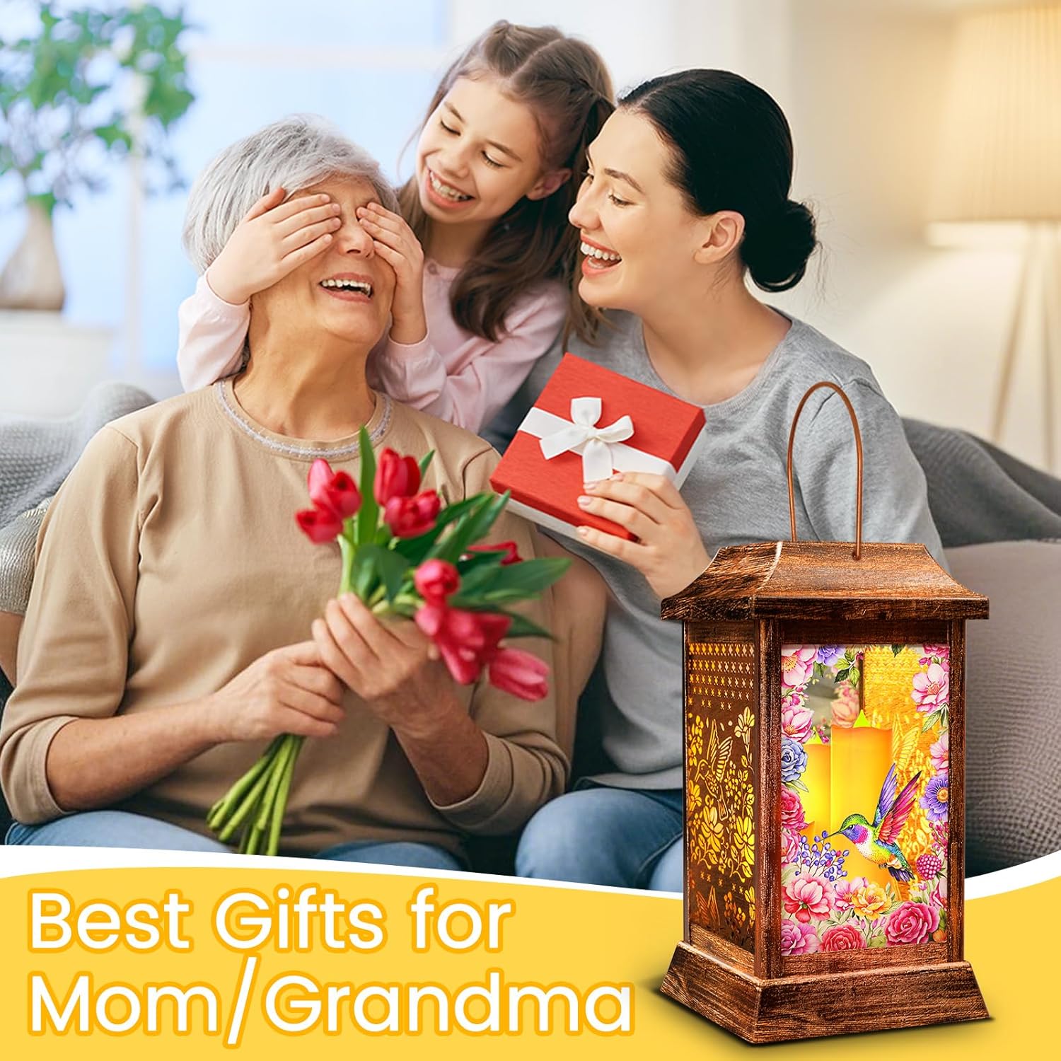 Hummingbird Solar Lanterns Outdoor Hanging Lanterns, Metal Glass Garden Decor Solar Lights, Gifts for Women Mom Birthday Grandma Mothers Day, Waterproof Decorative Lantern for Outside Patio Yard