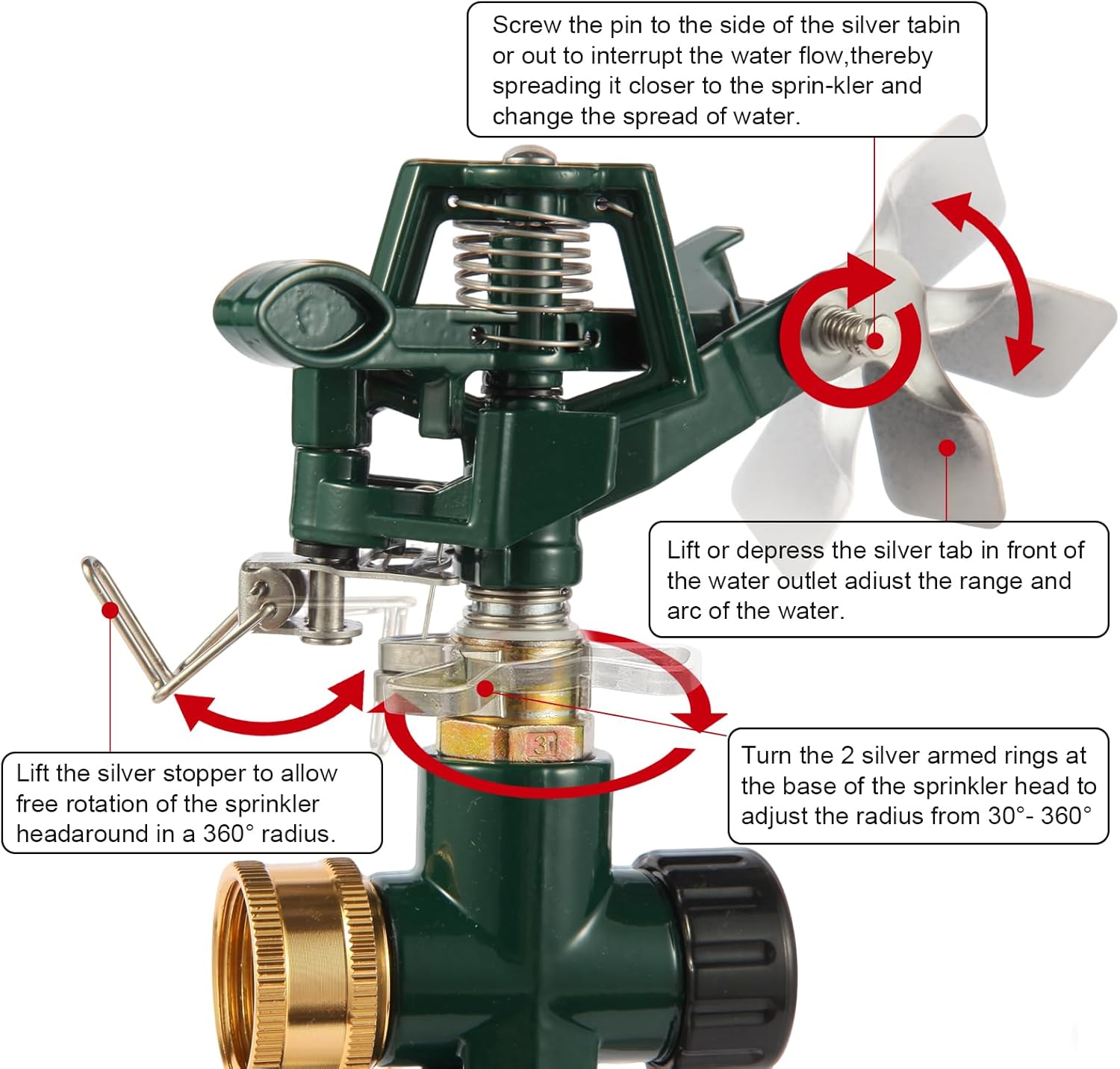 - Durable & Eco-Friendly Design: The green garden sprinkler is crafted from high-quality green zinc alloy, ensuring exceptional strength, corrosion resistance, and longevity. Built to endure harsh outdoor conditions, it resists rust, deformation, and wear, making it a reliable choice for year-round use. The IRRSTPRO sprinkler maintains peak performance even under intense sun or rain.