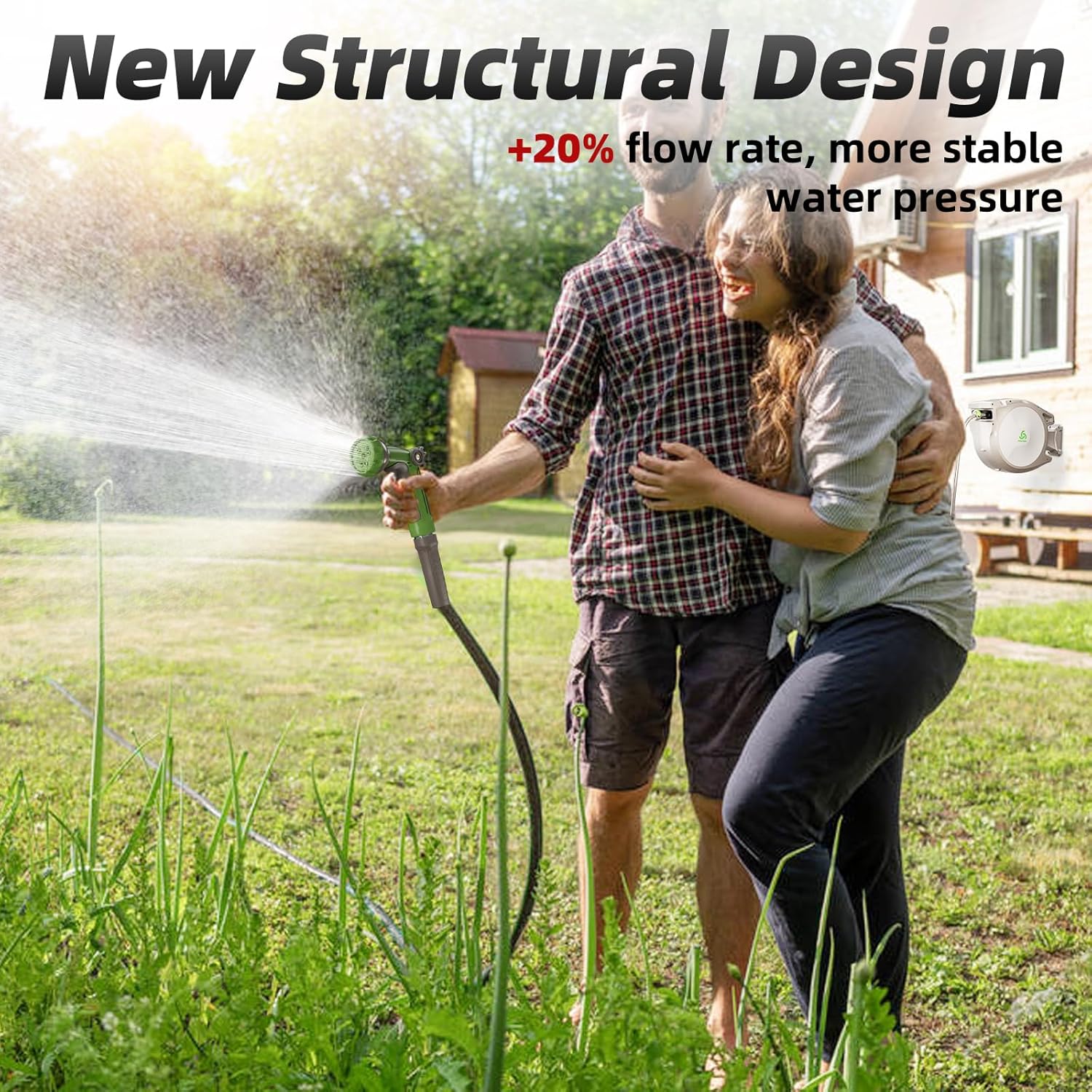 - Auto Rewind System: When finished gardening, just gently pull the hose outwards to activate the automatic recovery system. The hose will automatically recover. A stop ball can protect hose when it retracts