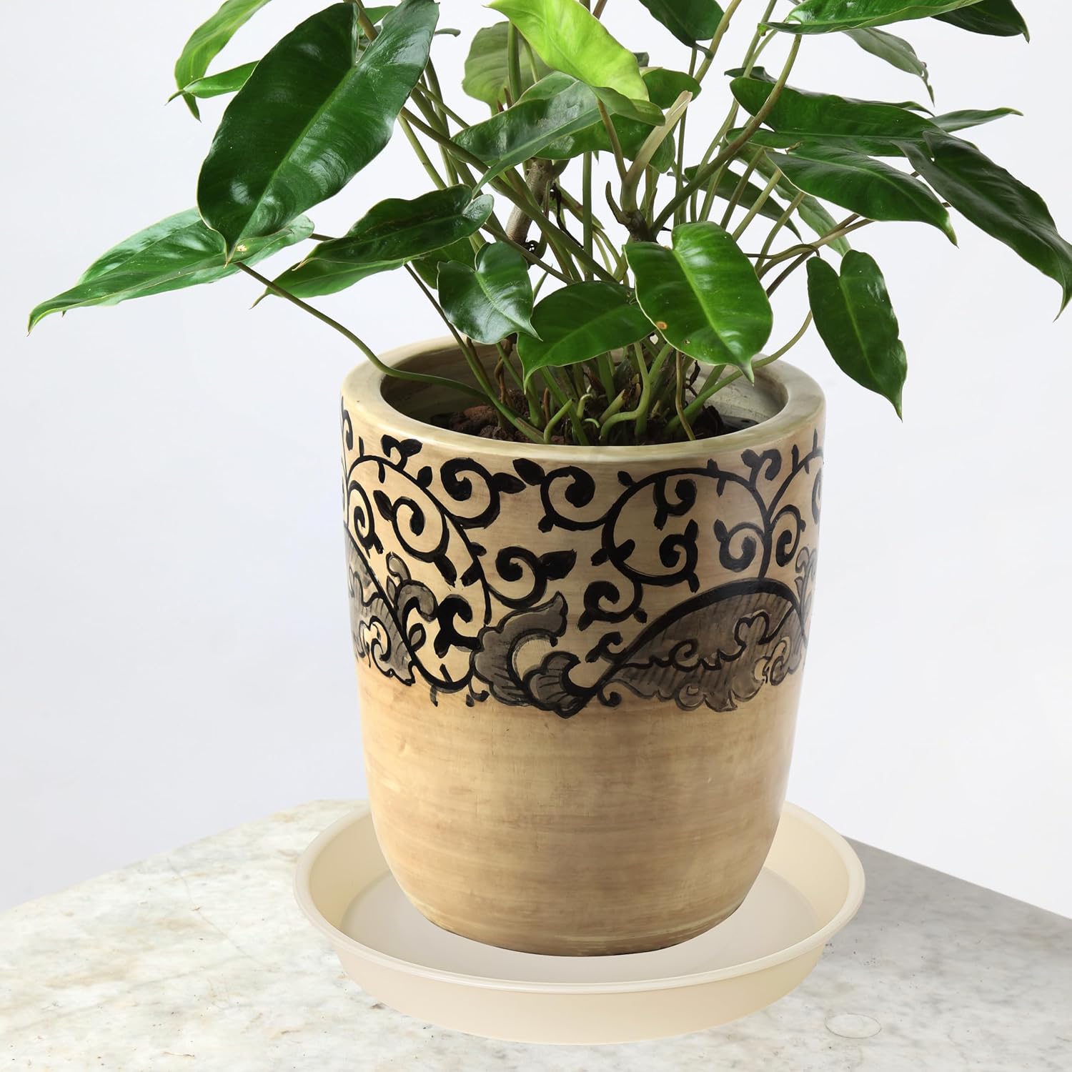 - OUTDOOR AND INDOOR USE - Long lasting strong and sturdy plastic tray is best choice for potted plants inside house or outdoor. No worries from Weather conditions for these plant saucers. Plant trays for indoors no holes.