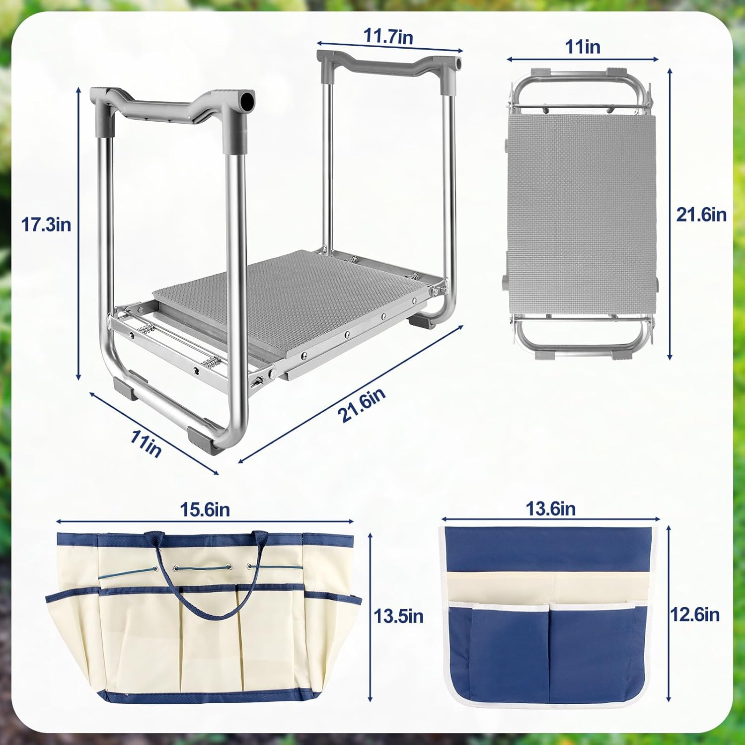 Garden Kneeler and Seat, Wider & Thicker Kneeling Pad Heavy Duty Foldable Garden Stool with Large Gardening Tool Pouch and Bag, Portable Garden Bench- Gardening Gifts for Women, Men, Seniors, Mom& Dad