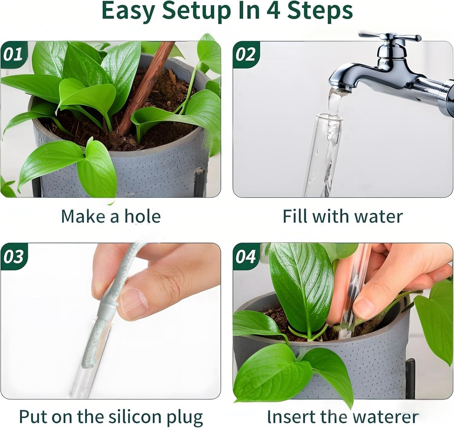 - Self Watering Planter Insert: Follow instructions closely, make a hole before inserting the planter insert into the soil to prevent glass globes from shattering.