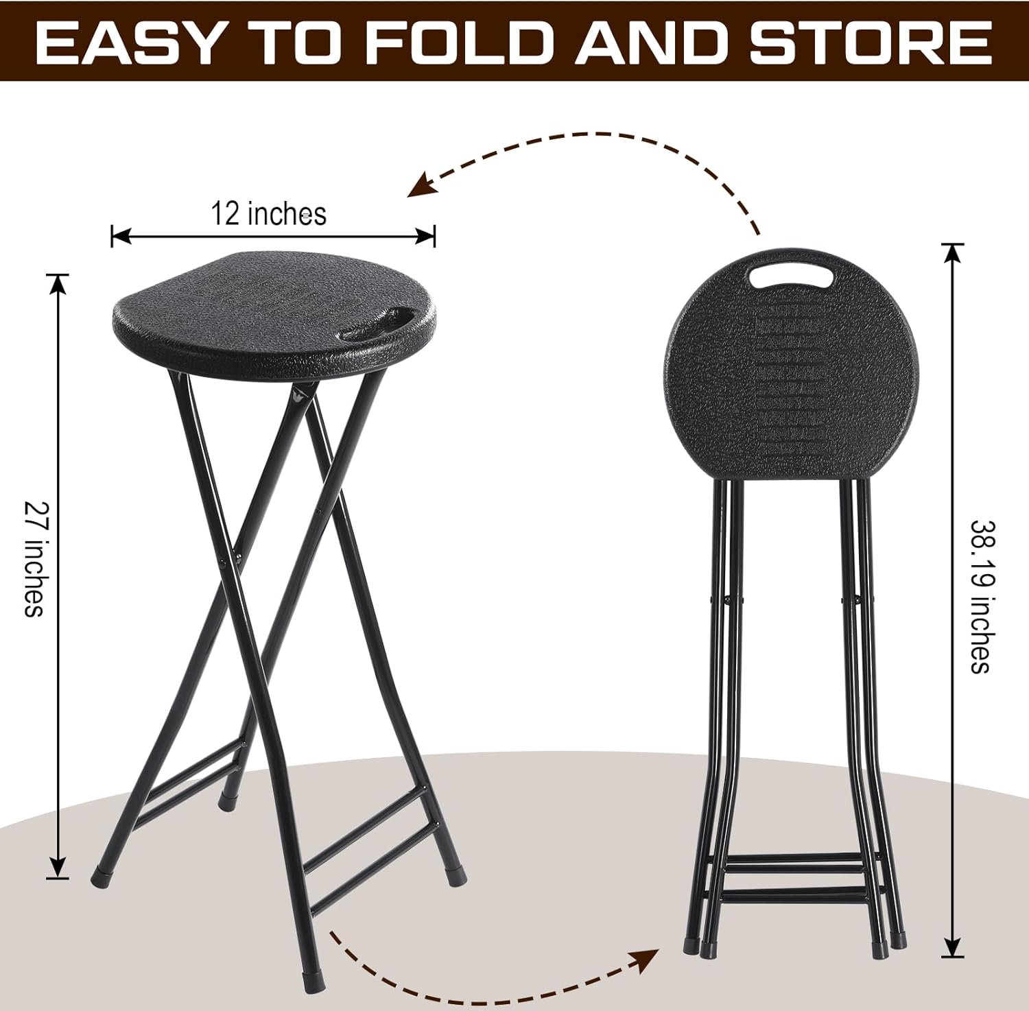 - Easy to Fold: our folding counter height stool can be folded when not in use and stored in tight corners or car trunks to save more room, has a handle design that is convenient to carry and move, providing maximum utility when needed; This practical design makes storage and handling easier and quicker