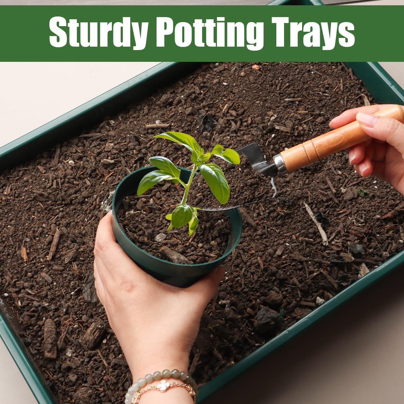 - 【5 Flat Pot Trays】Includes 5 seedling nursery trays, saving time on daily transportation of seedlings from indoor to outdoor. Flat trays size: 17" x 12" x 2", weight: 11.5oz.