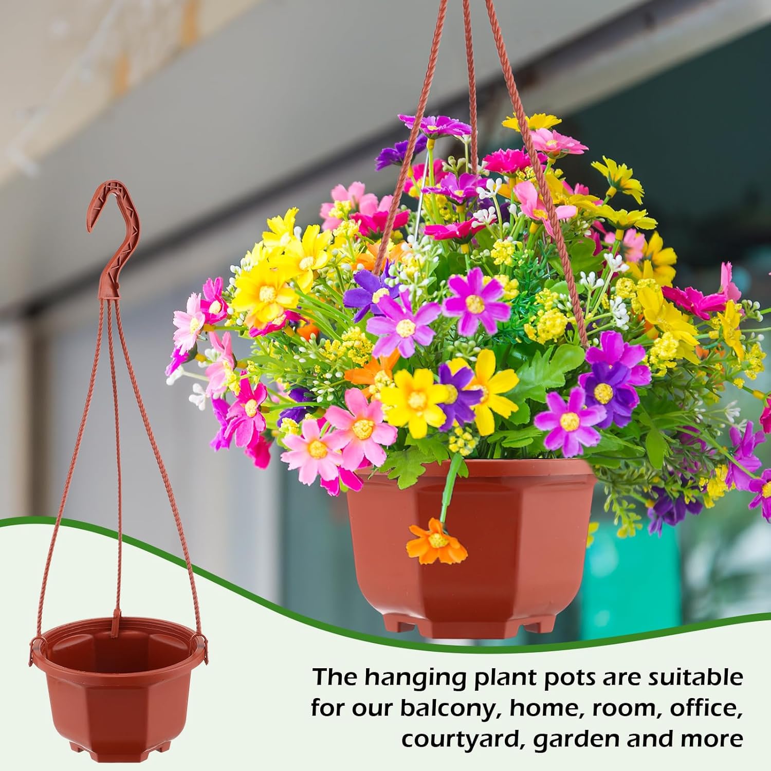 - Widely Applicable: plastic hanging pots are equipped with 3 chain hooks, and the detachable hooks are strong and balanced, which can ensure a stable hanging; The hanging plant pots are suitable for our balcony, home, room, office, courtyard, garden and more