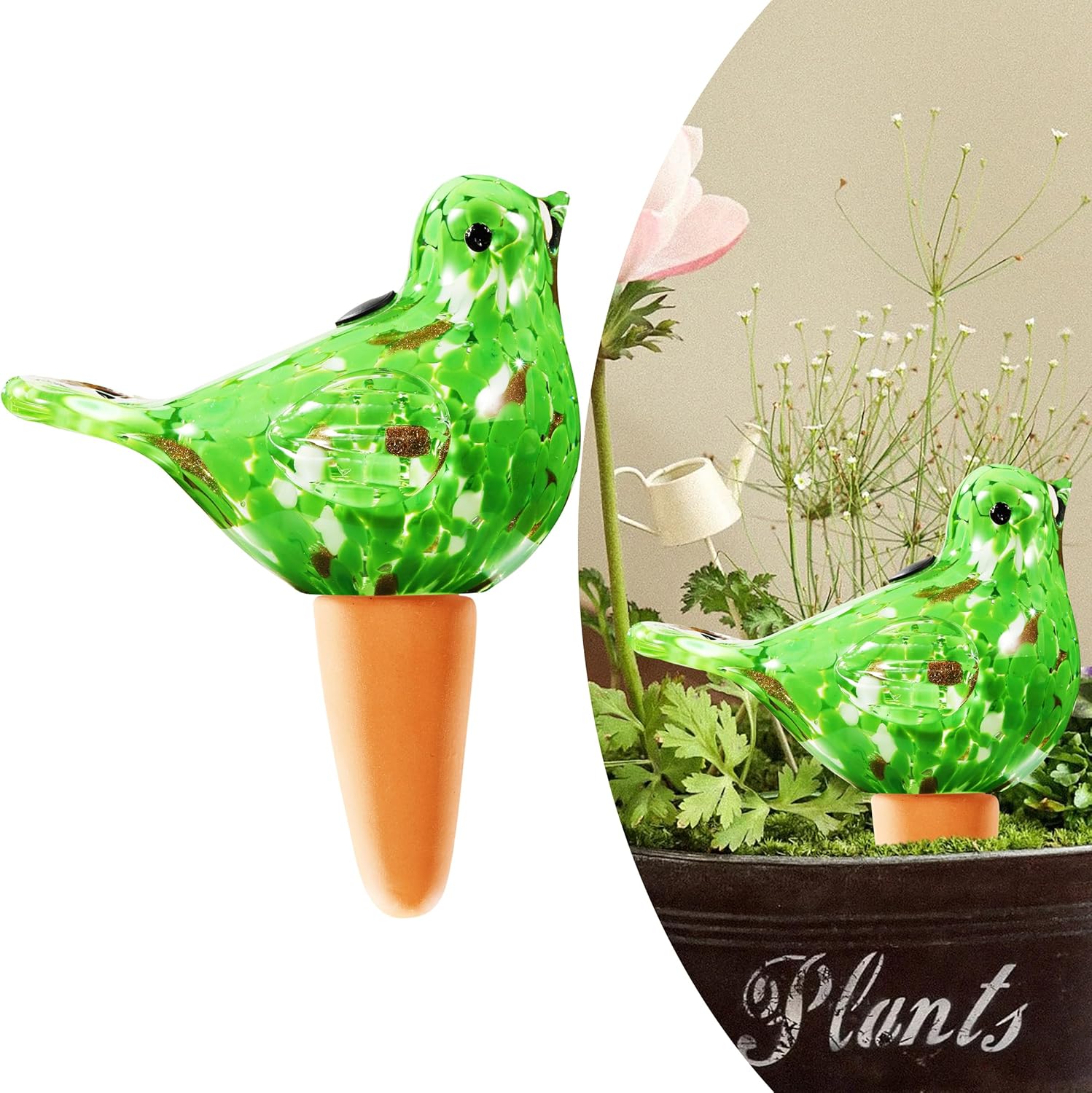 - EASY TO USE: We arranged a small water pour hole on the glass bird, which makes it easy to refill the water level at any time without taking it out of the soil, it can always nourish your plants