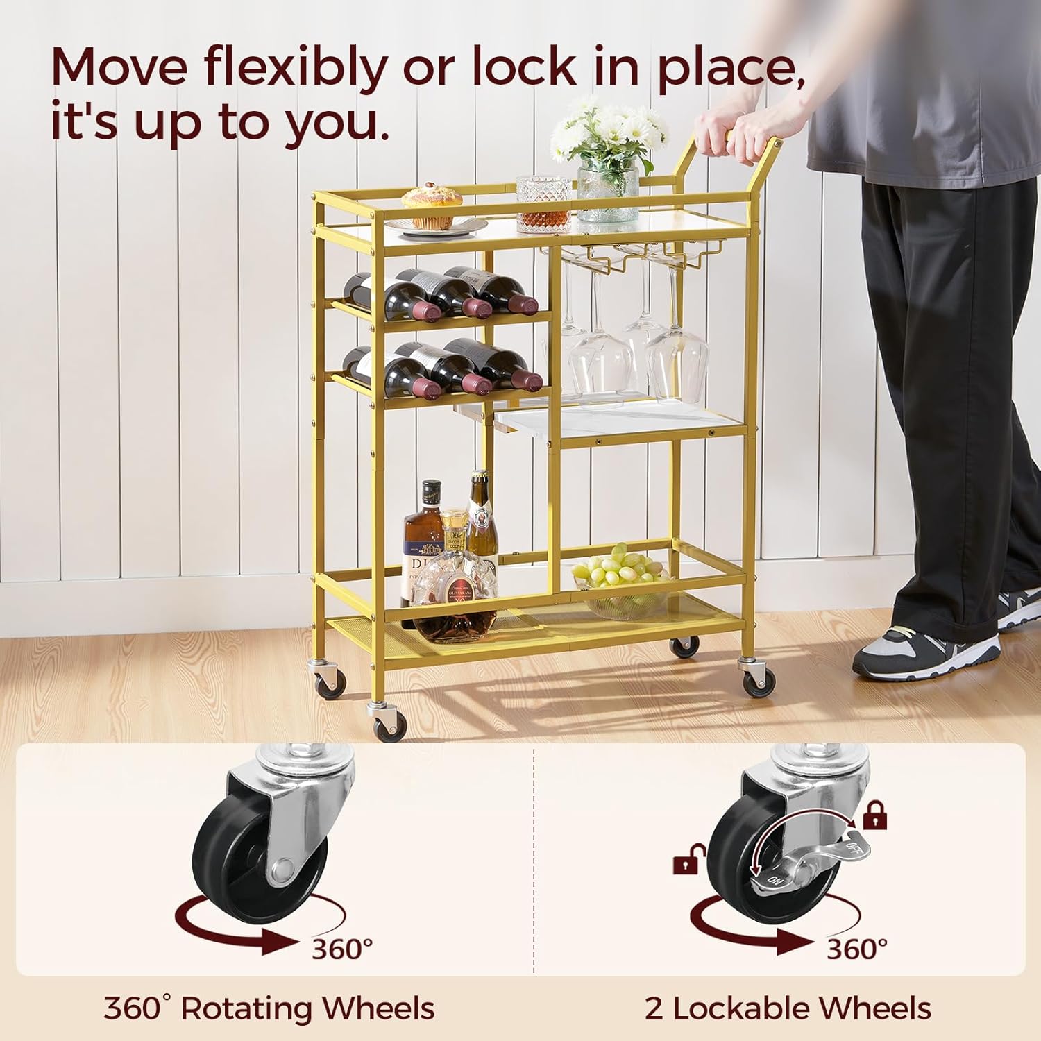 - Versatile Use: This mobile bar cart serves as a kitchen trolley, coffee cart, beverage station, and even adds a stylish touch to entryways, living rooms, or offices. Whether serving drinks or storing items, it delivers both function and flair