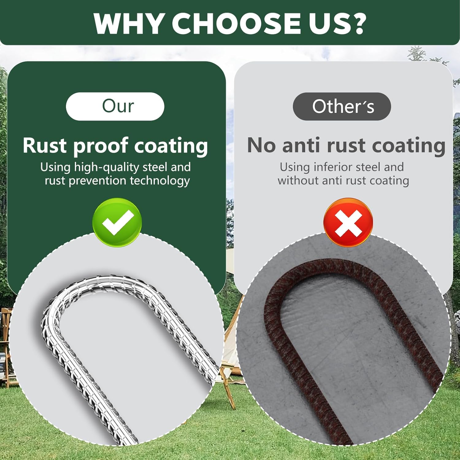 - Stability: No more struggling with flimsy stakes! Our rebar stakes 12 inch feature a unique spiral design, providing maximum grip and stability in various terrains. Whether it's sandy beaches or rocky grounds, these stakes are up for any adventure