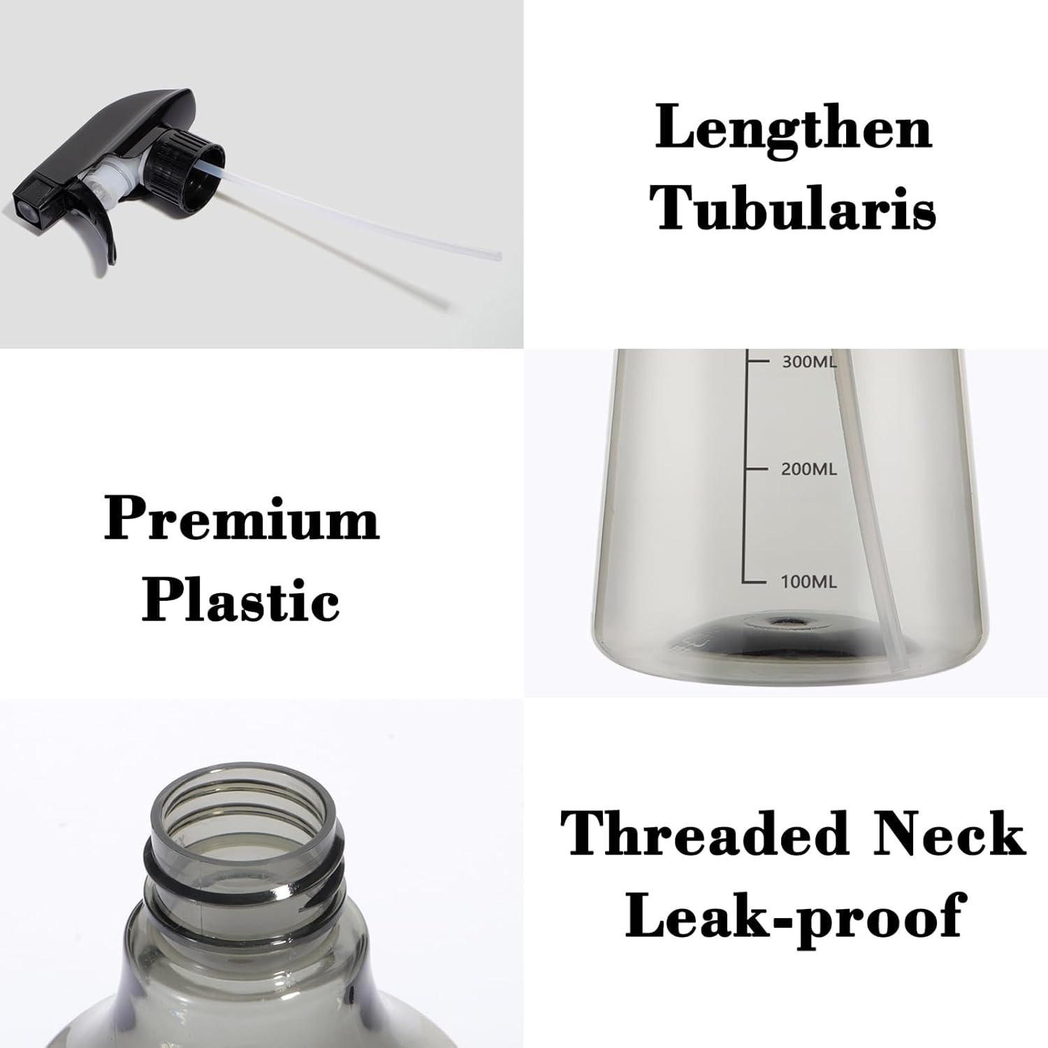 - FEATURES: Transparent , you can see how many liquid left clearly; safety buck and threaded neck prevents liquid from leaking efficiently; fine and homogeneous mist