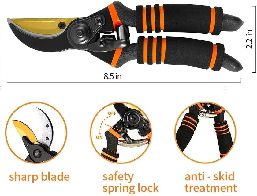 - š¹8.5" Professional Premium SK5 Steel with Titanium Bypass Pruning Shears-Ultra-sharp And Durable,Ergonomically Designed,Versatility Pruners For Gardening,Safe And Easy To Handle