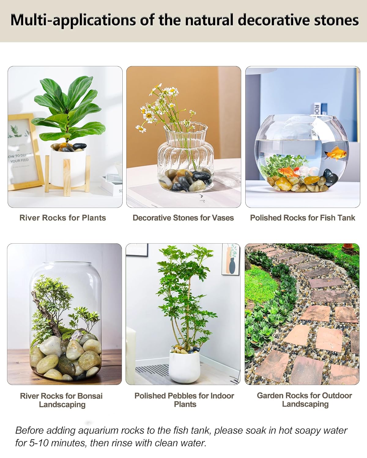 - 【Aquarium & Vase Filler Rocks】 Suitable for aquariums and fish tanks after rinsing. Great for turtle habitats or betta fish tanks. Also works well as vase fillers for lucky bamboo and floral arrangements.