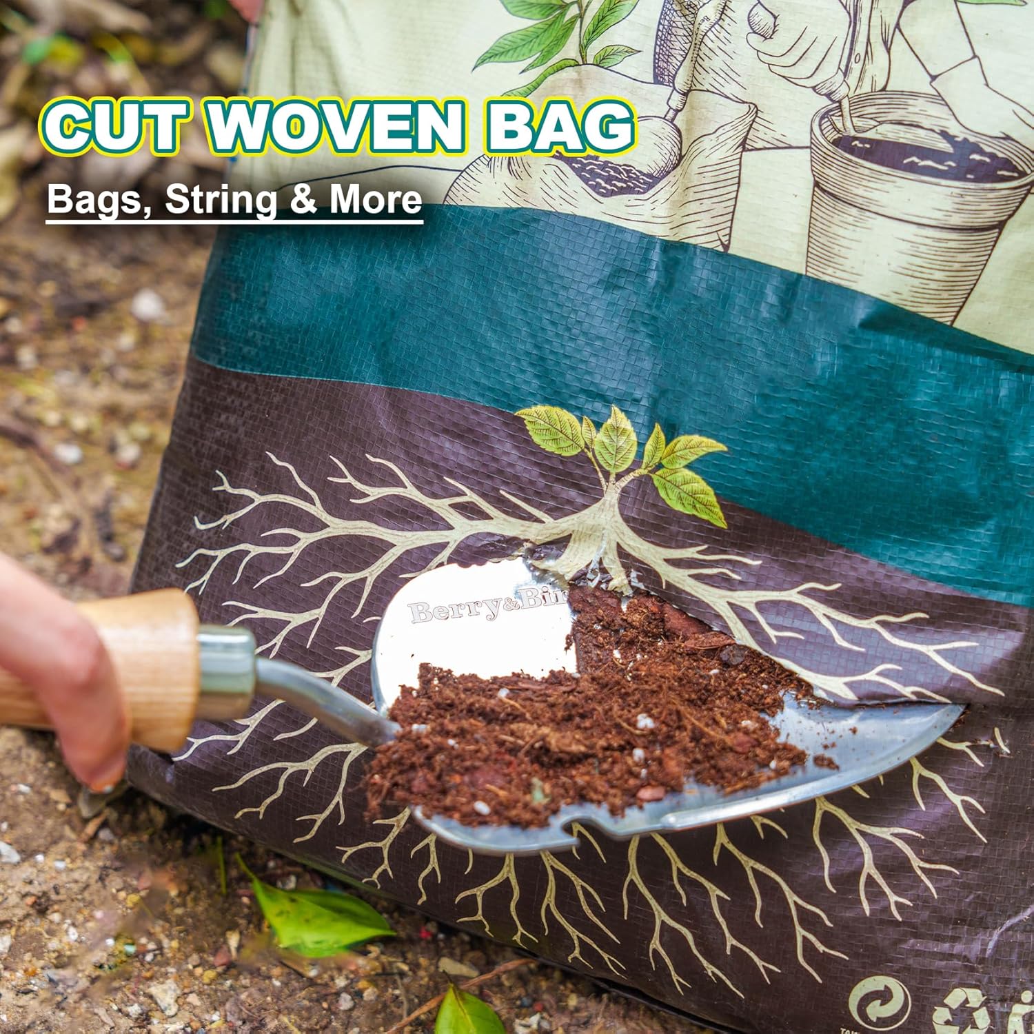 Berry&Bird Weeding Trowel, Multi- Use Hand Shovel with Serrated Blade Stainless Steel Garden Trowel Plus Size Potting Trowel with Wooden Handle for Transplanting, Digging, Measuring, Cutting Roots