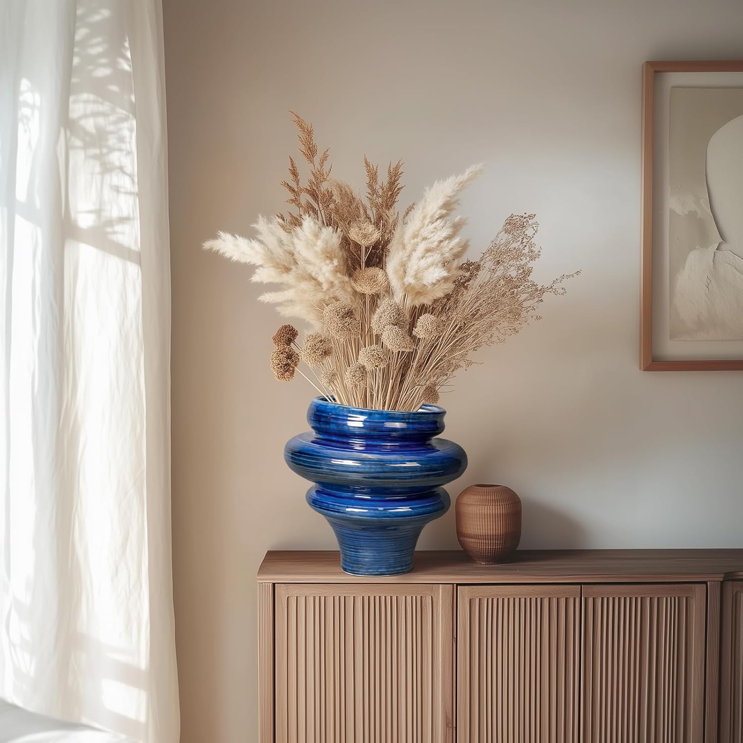 Ceramic Pots for Plants - 11 Inch Ceramic Planter with Drainage Hole, Unique Planters for Indoor Outdoor, Large Decorative Flower Pot, Home Office Room Decor, Gifts for Plants Lover, Blue