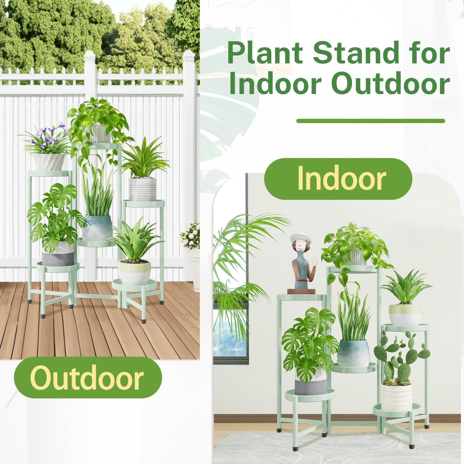 iDavosic.ly Plant Stand Indoor Outdoor, 6 Tier Corner Metal Flower Display Holder Shelf, Folding Tall Orchid Rack for Patio Balcony Porch Garden Living Room House, Light Green