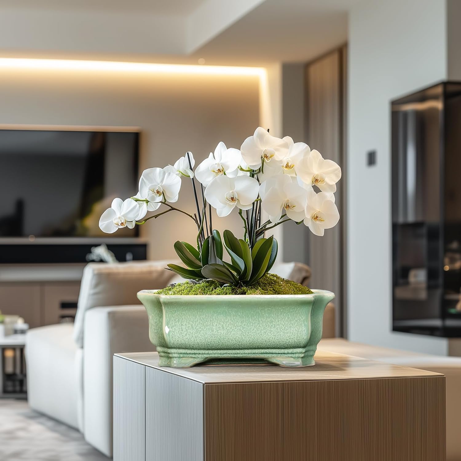 - Planter Design: Featuring a beautiful blue reactive glaze finish and elegant rectangluar appearance, this bonsai pots combines practicality with beauty, suitable for table, desk, windowsill, shelves, living room, bedroom, bathroom, porch, study, office, patio, balcony, zen garden, any indoor or outdoor space