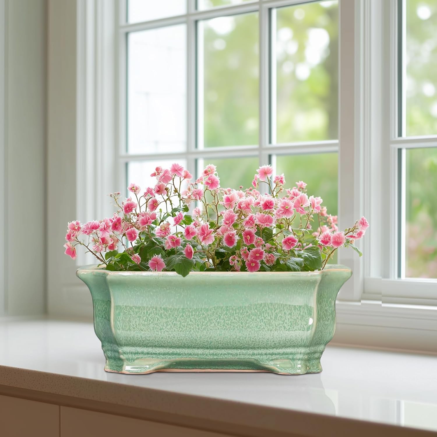 - Planter Design: Featuring a beautiful blue reactive glaze finish and elegant rectangluar appearance, this bonsai pots combines practicality with beauty, suitable for table, desk, windowsill, shelves, living room, bedroom, bathroom, porch, study, office, patio, balcony, zen garden, any indoor or outdoor space