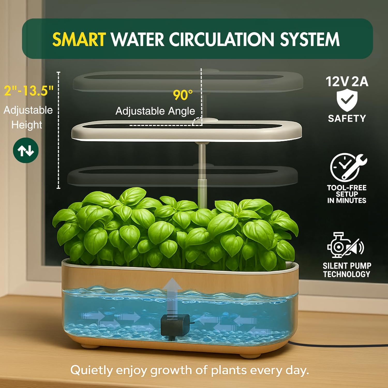 - 【Upgraded LCD Display - Smarter & Safer】The all-new upgraded LCD screen brings your indoor garden to the next level! It clearly displays the lighting mode, planting days record, real-time temperature, and features a child lock function—making your growing experience smarter, safer, and more convenient than ever before.