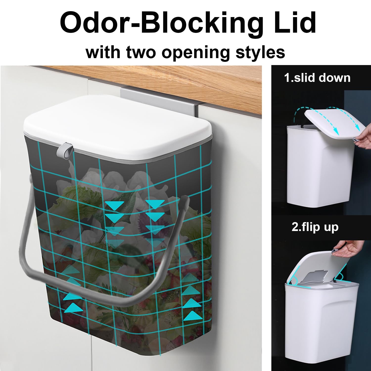 - Works as Compost Bin: It's odor-blocking. Say goodbye to the smelly decomposing waste. Our waste basket comes with a lid. You can let the fruit scraps, vegetable peelings and other compostable materials build up for several days without worrying about attracting flies or terrible smells into your kitchen.