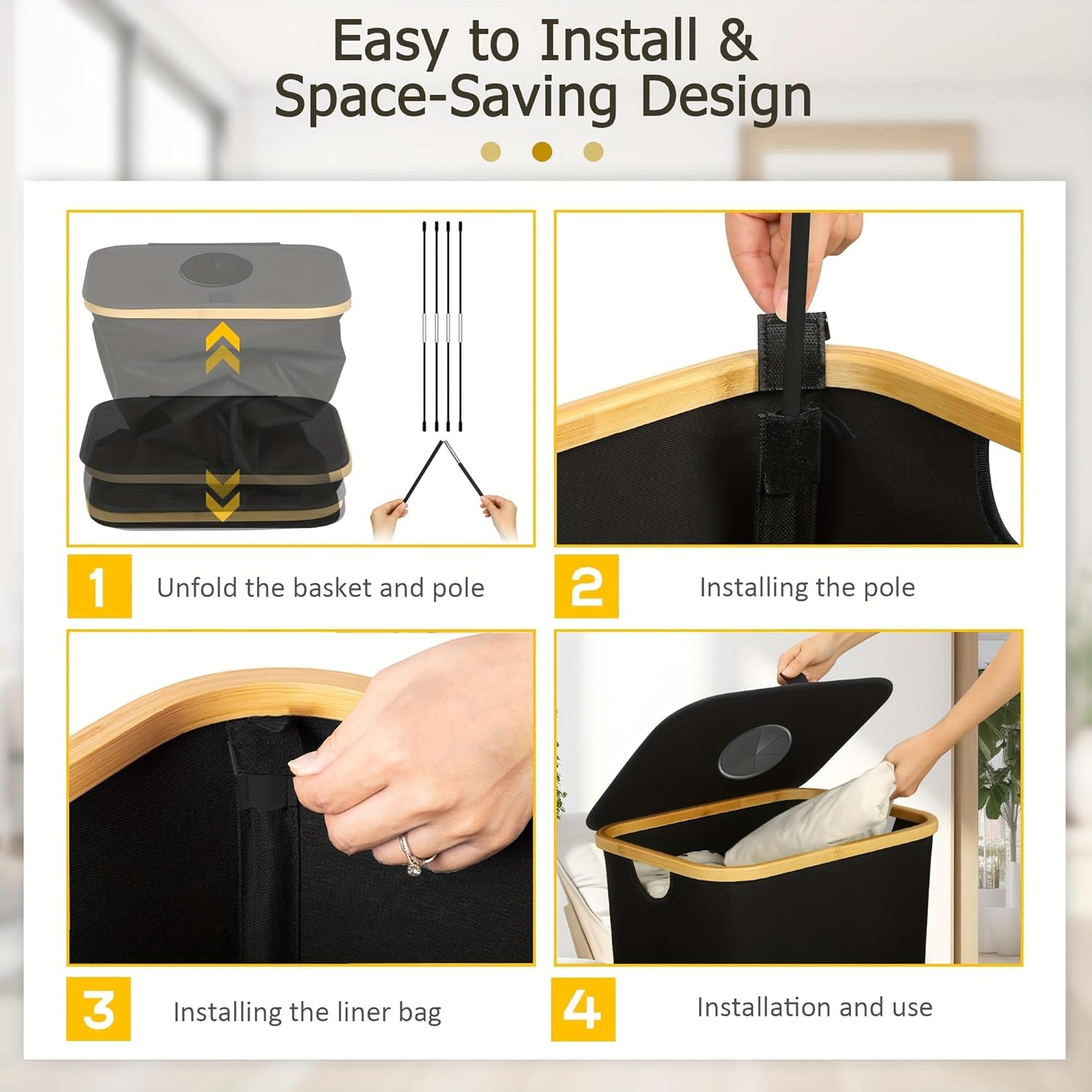 - 【Easy Installation】Assemble the trash cans for kitchen quickly by installing the support rods in the four corners and securing them to the bottom of the bamboo basket. With a simple design, this recycling bin can be easily folded or unfolded for storage and mobility. In addition, the lid prevents the spread of odors and keeps the room fresh and clean.