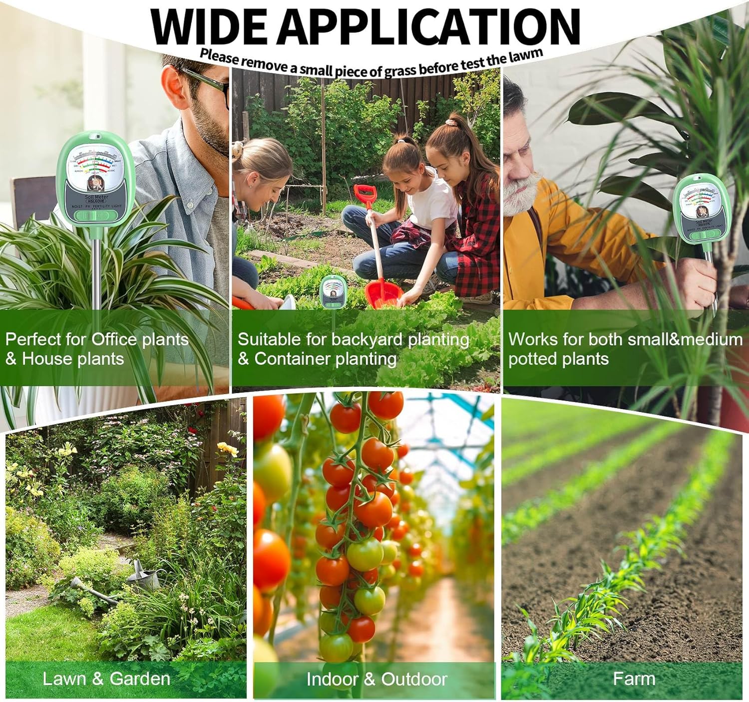 - 🌿 【4-in-1 Soil Test Kit for Accurate Plant Care】This upgraded 4-in-1 soil tester combines a soil moisture meter, soil pH tester, sunlight meter, and fertility sensor in one tool. It provides instant, accurate readings to help you monitor soil conditions and ensure optimal plant health. Perfect for gardeners needing a reliable soil test kit for indoor or outdoor gardening.