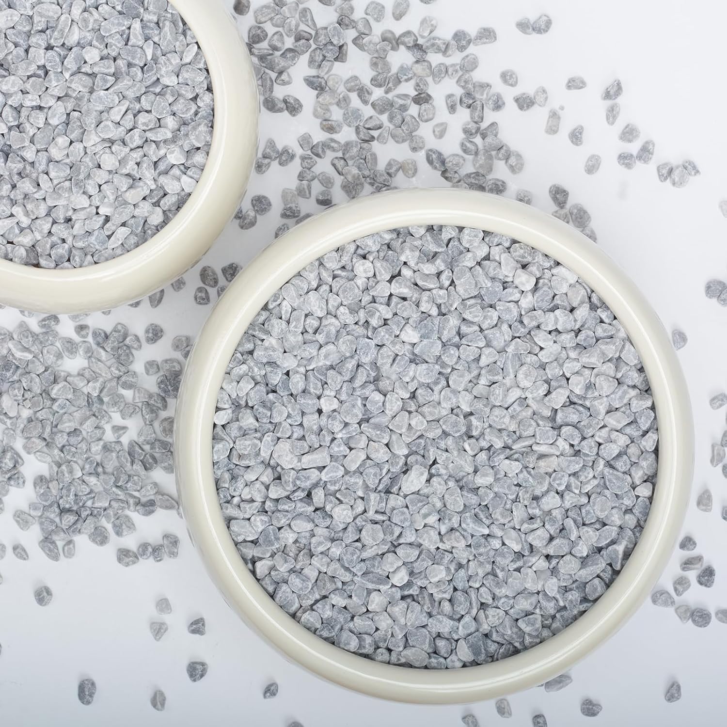 - Elegant Grey-White Texture: These 1/5-inch tumbled gravel pieces feature a natural grey-and-white, marble-like look. Tumbled for safety—no sharp edges, safe for succulents, pets, and aquariums. Ideal for detailed applications, they add a subtle, refined touch to indoor and outdoor spaces