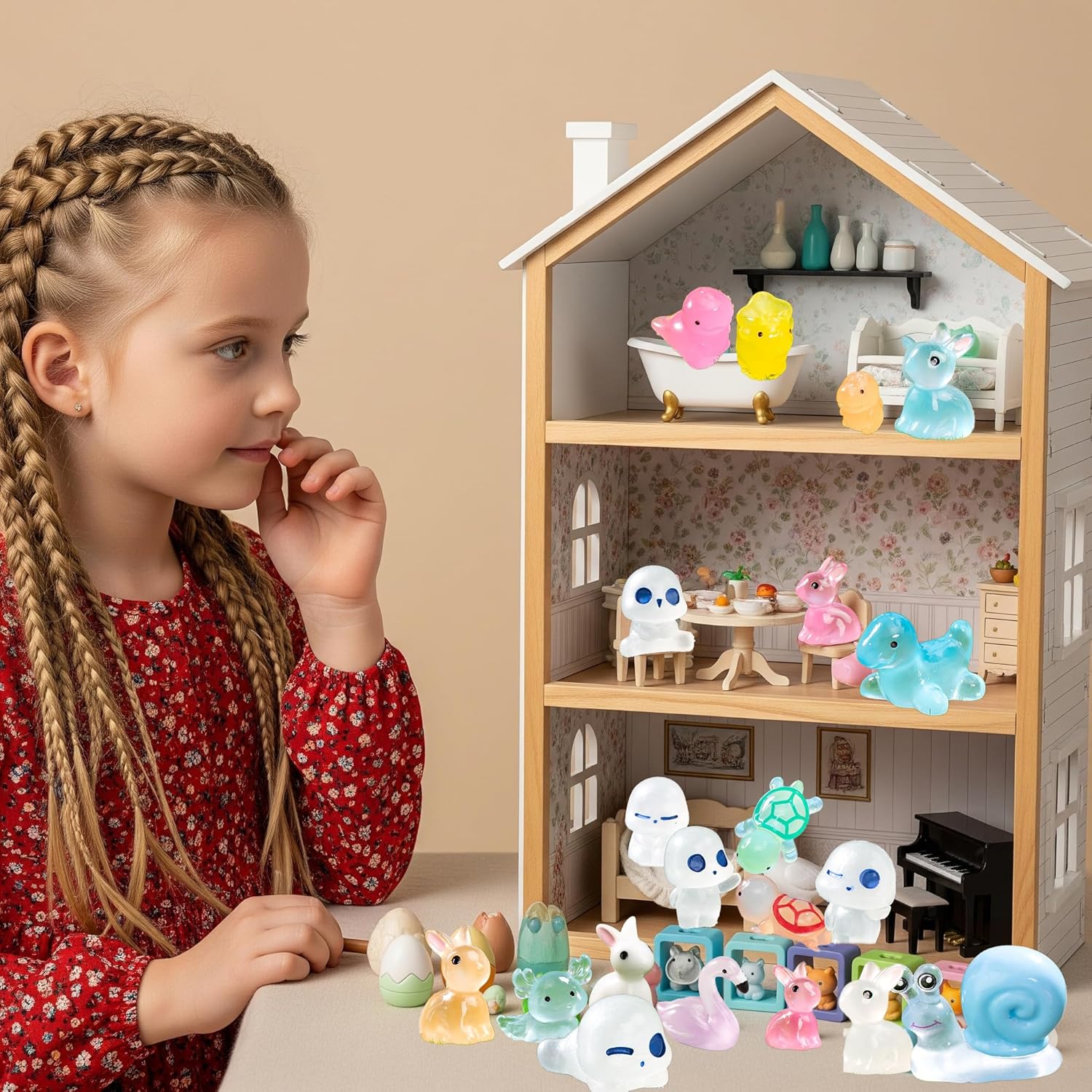 - Fairy Garden Accessories: These adorable mini resin animals feature a special glow-in-the-dark effect that absorbs sunlight or ambient light. The tiny resin animals glow beautifully in darkness, creating unique visual delight day and night. Perfect for tucking into fairy gardens, terrariums, or shelves, they add a splash of magic, delight, amusement, and a touch of calm wherever you place them