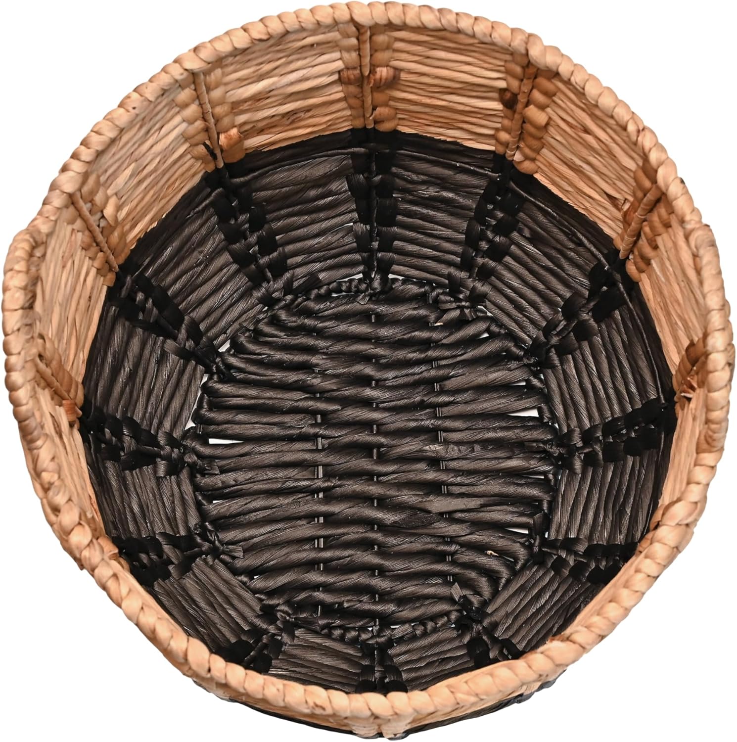 - With the natural and black coloring of woven fibers, this basket is the perfect neutral addition to any bohemian home; crafted by artisans, the color can be slightly different than shown