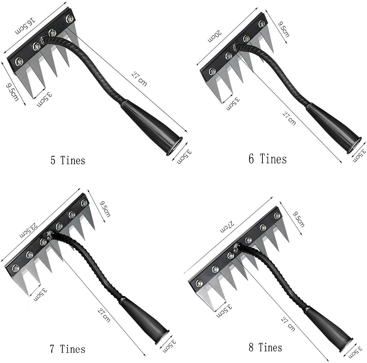 - Versatile Sizing Options:Choose from 4 widths (5-tooth, 6-tooth, 7-tooth, 8-tooth) to match your gardening needs, whether maintaining flower beds, vegetable patches, or large agricultu.