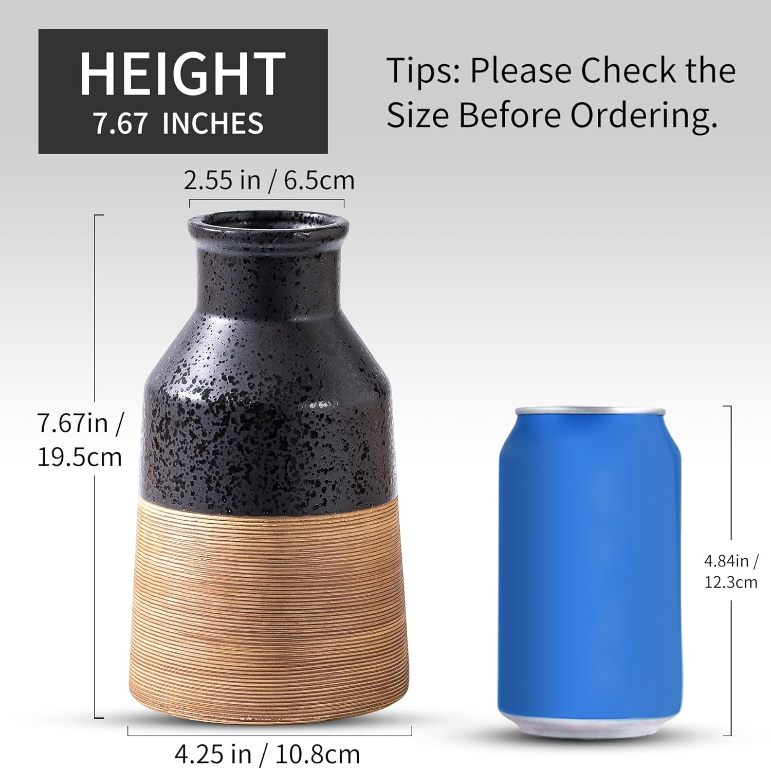 - 【Two-Tone Striped Design & Rustic Modern Farmhouse Style】Handcrafted ceramic vase combines bold black and warm brown horizontal stripes for a striking rustic-modern aesthetic. Perfect as mantle decorations, living room centerpieces, or cottage core decor accents. The 7.7" height and 2.55" wide opening balance floral arrangements and dried botanicals like pampas grass, eucalyptus, or wedding bouquets.