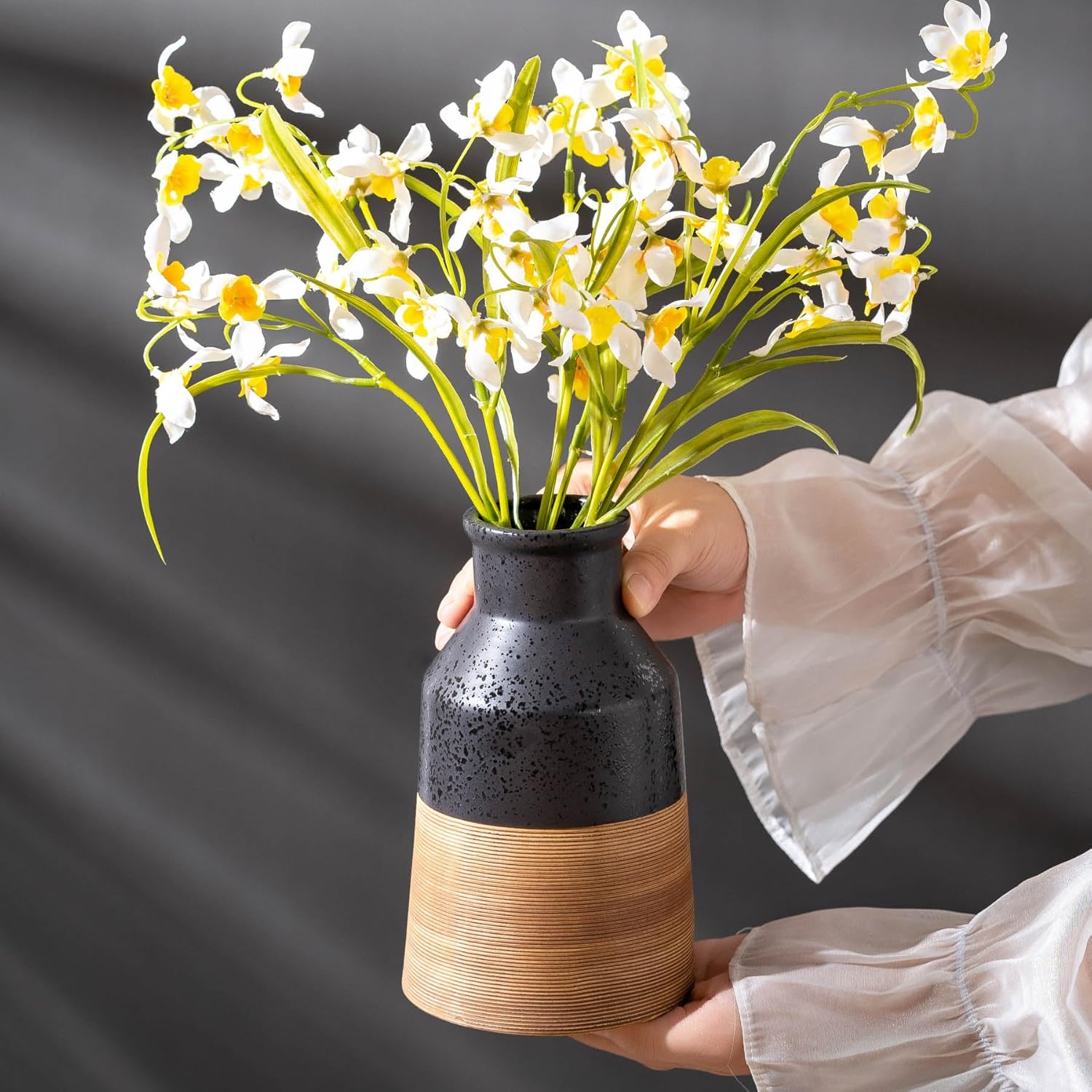 - 【Multi-Scenario Elegant Decor Gift】Transitional style suits farmhouse, modern, and black living room decor. Use for holidays (Christmas, Thanksgiving), weddings, or as a housewarming gift. The striped ceramic vase elevates offices, coffee tables, and fireplace mantles with understated sophistication.