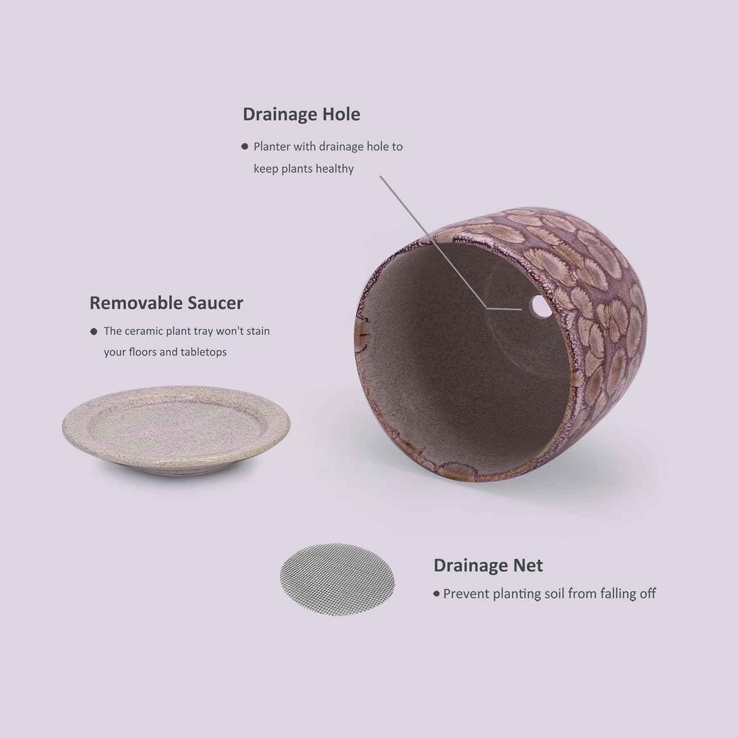 - Special Feature : Drainage Hole, with Saucer